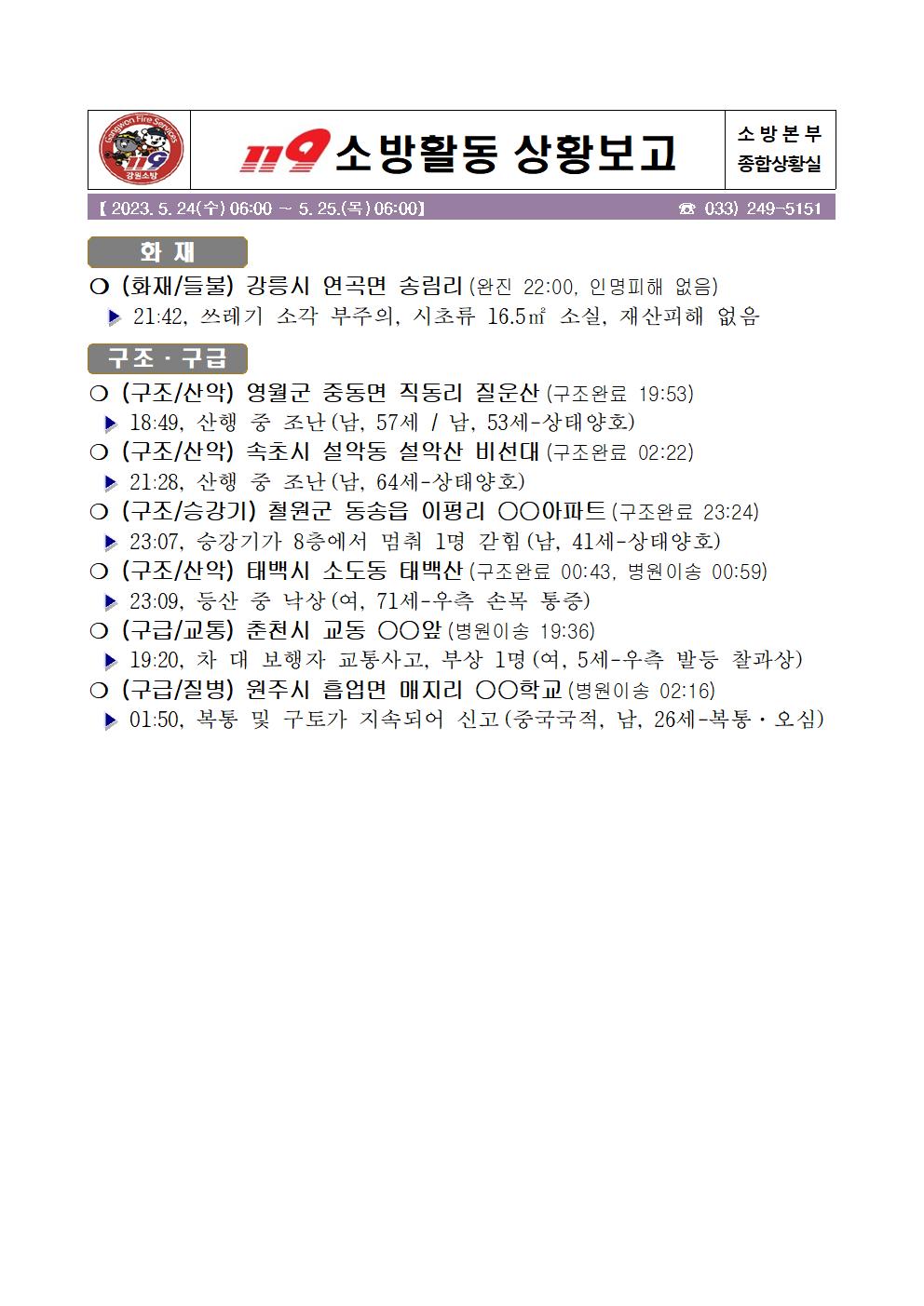 119 소방활동 일일상황보고(5.25.목) 06:00