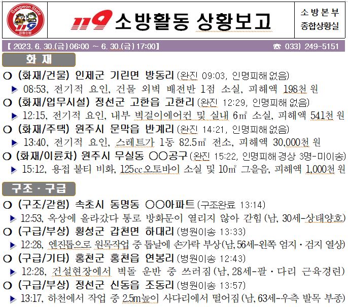 119 소방활동 일일상황보고(6.30.금) 17:00
