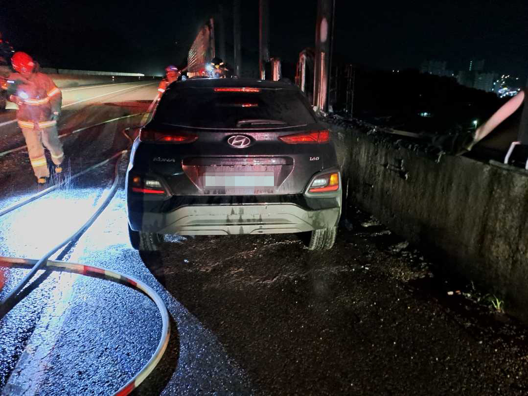 3. 내용: 코나승용차가 방호벽 충돌 후 화재 발생