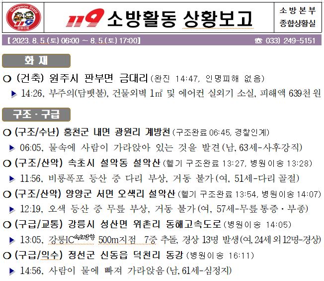 119 소방활동 상황보고(8. 5. 토) 17:00