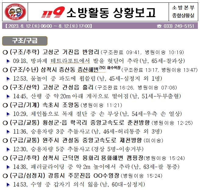 119 소방활동 일일상황보고(8.12.토) 17:00