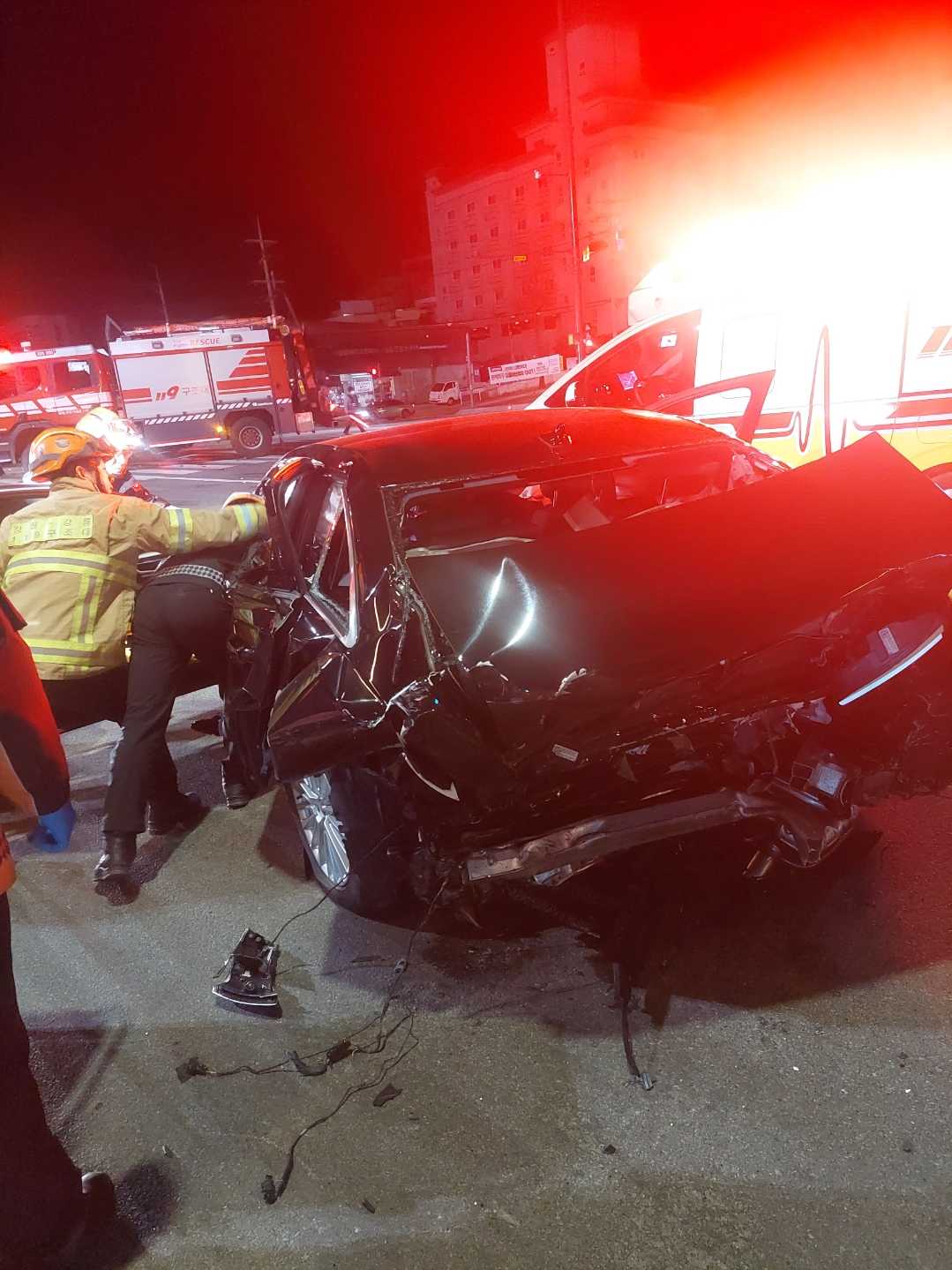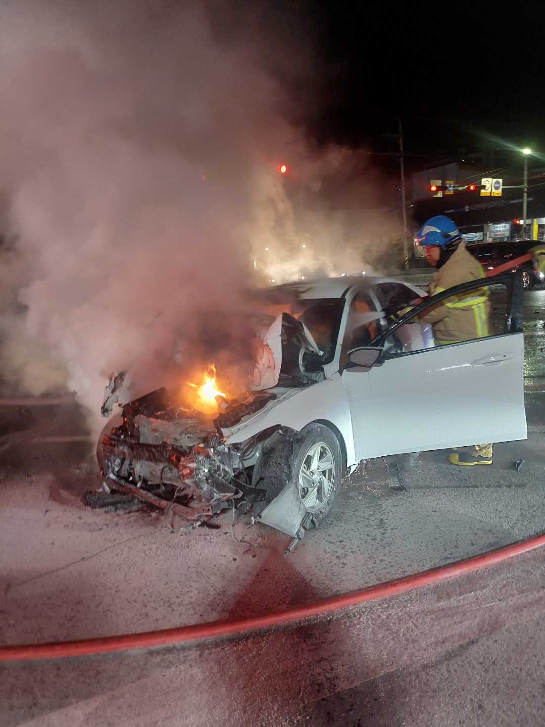 강릉 홍제동 교통사고 후 차량 화재 관련 사진 4점