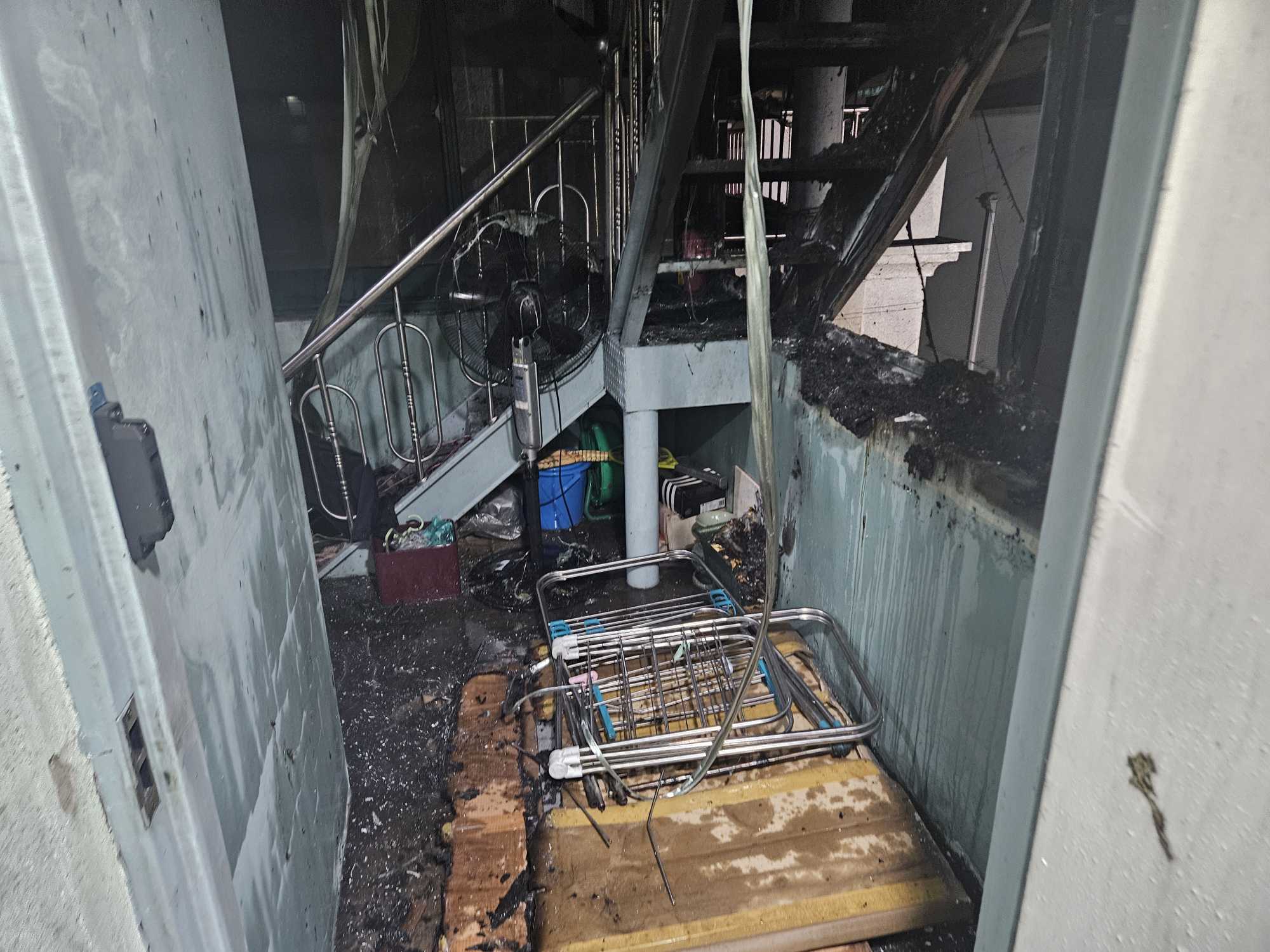 - 피해사항 : 530만원 / 창고 1동 반소 및 건물외벽 그을림, 실외기, 가재도구 등 소실