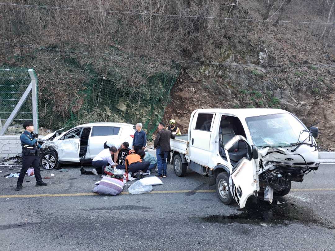 홍천 북방면 차량 정면 충돌 사고 관련 사진 2점