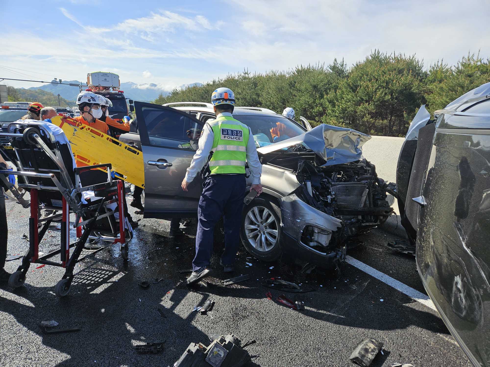 원주 중앙고속도로 3중 추돌 교통사고 사진