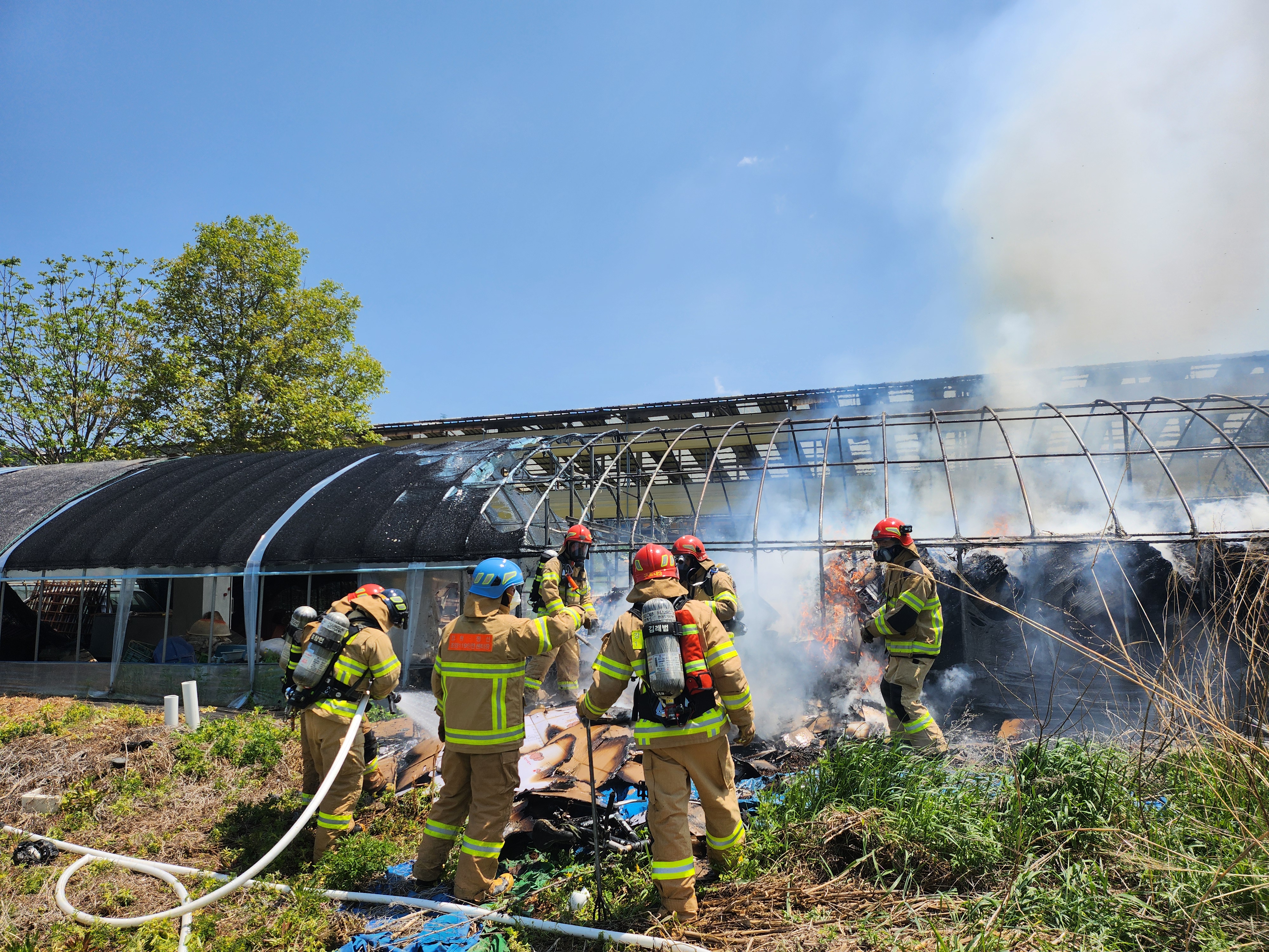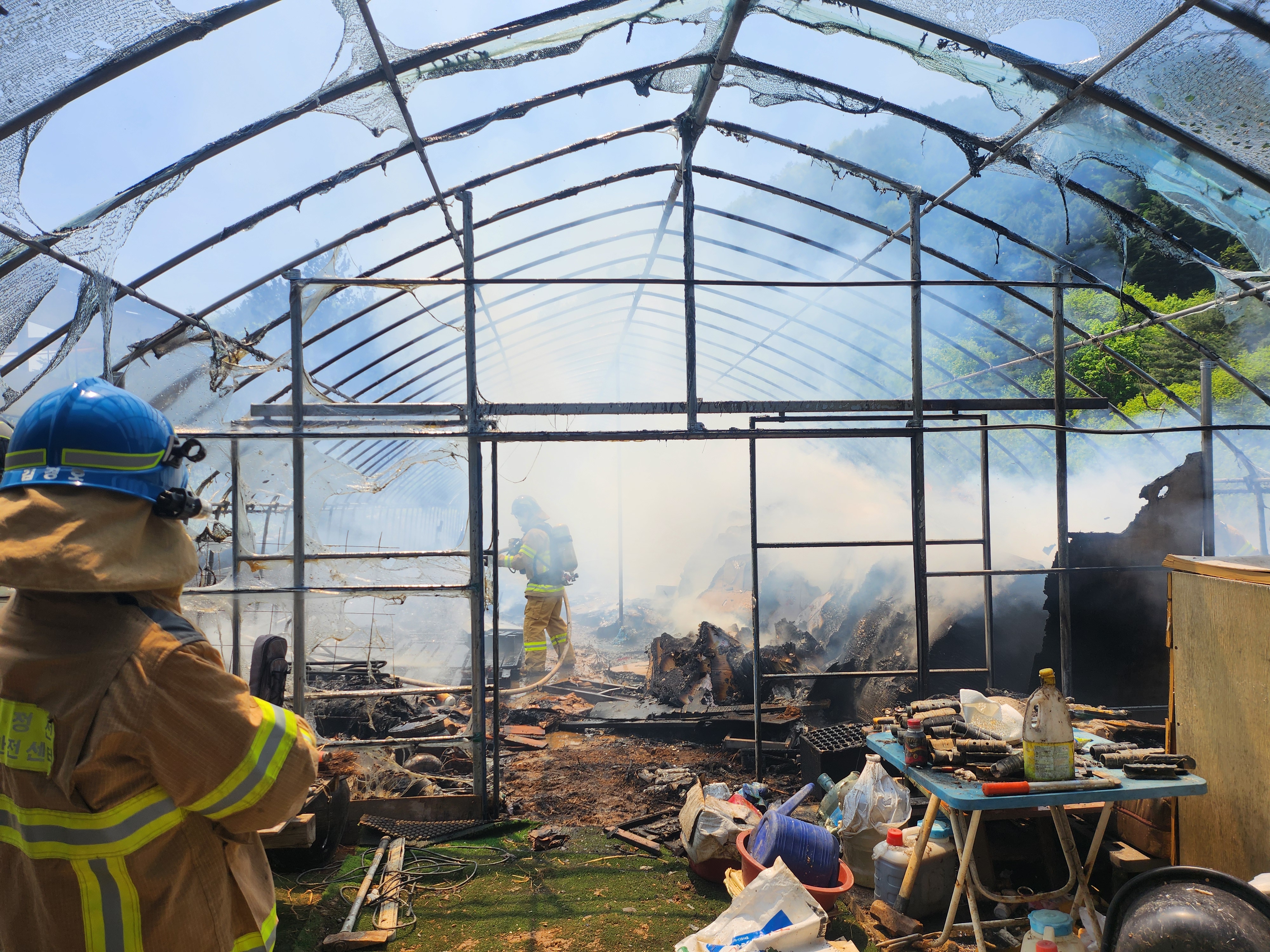 정선 북평면 남평리 비닐하우스 화재 현장 사진