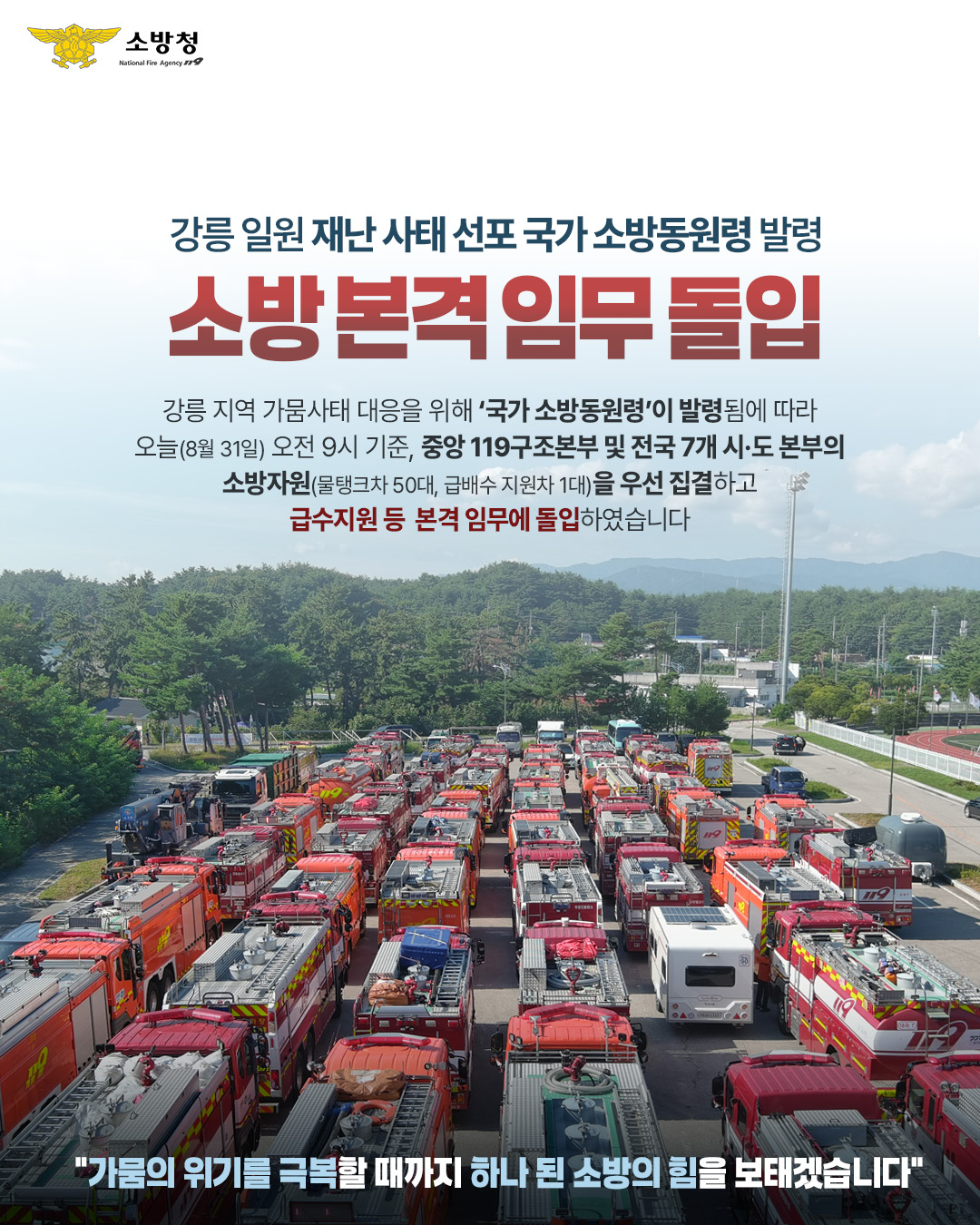 | 26850 | 강릉시 가뭄 대응 소방 급수지원 본격화 | 정선홍보 | 2025-09-10 | 265 | |