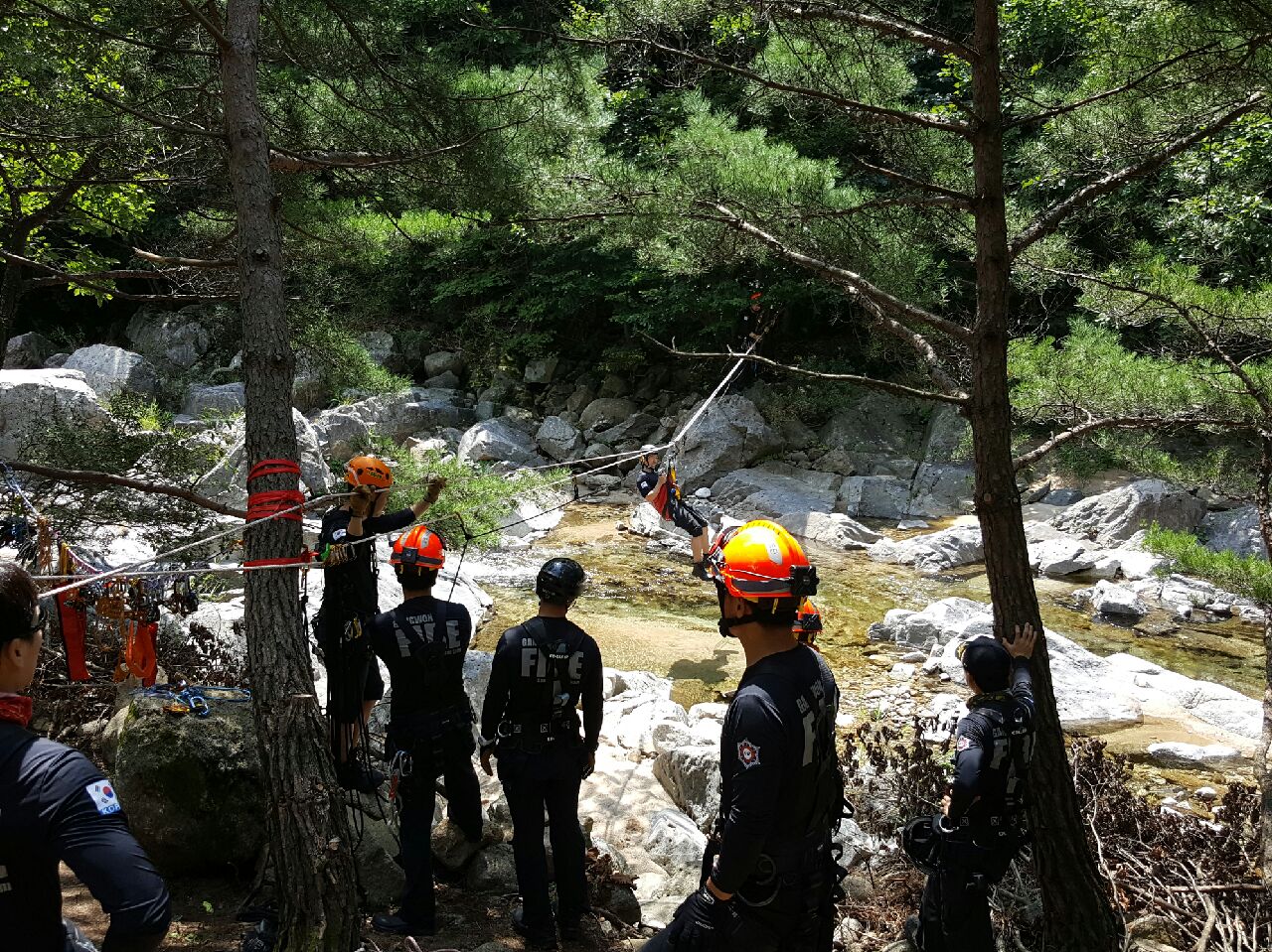 강원도소방본부 특수구조단 여름철 계곡 고립사고 대비 인명구조훈련 실시