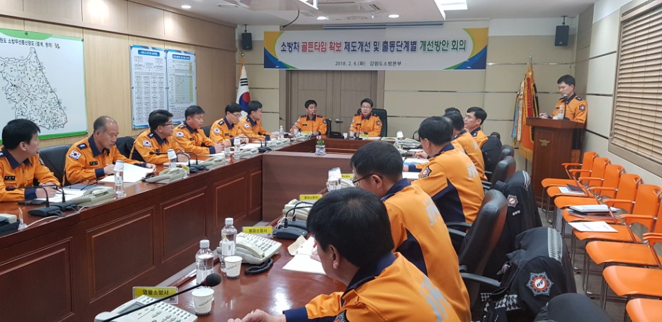강원도소방본부는 2. 6.(화) 오후 2시부터 이흥교 본부장 주재 하에 소방본부 전략상황실에서 도내 16개 소방서 방호구조과장이 한자리에 모여 제천과 밀양 화재에 따른 현장대응능력 강화와 후속방안 마련을 위해 긴급회의를 가졌다.