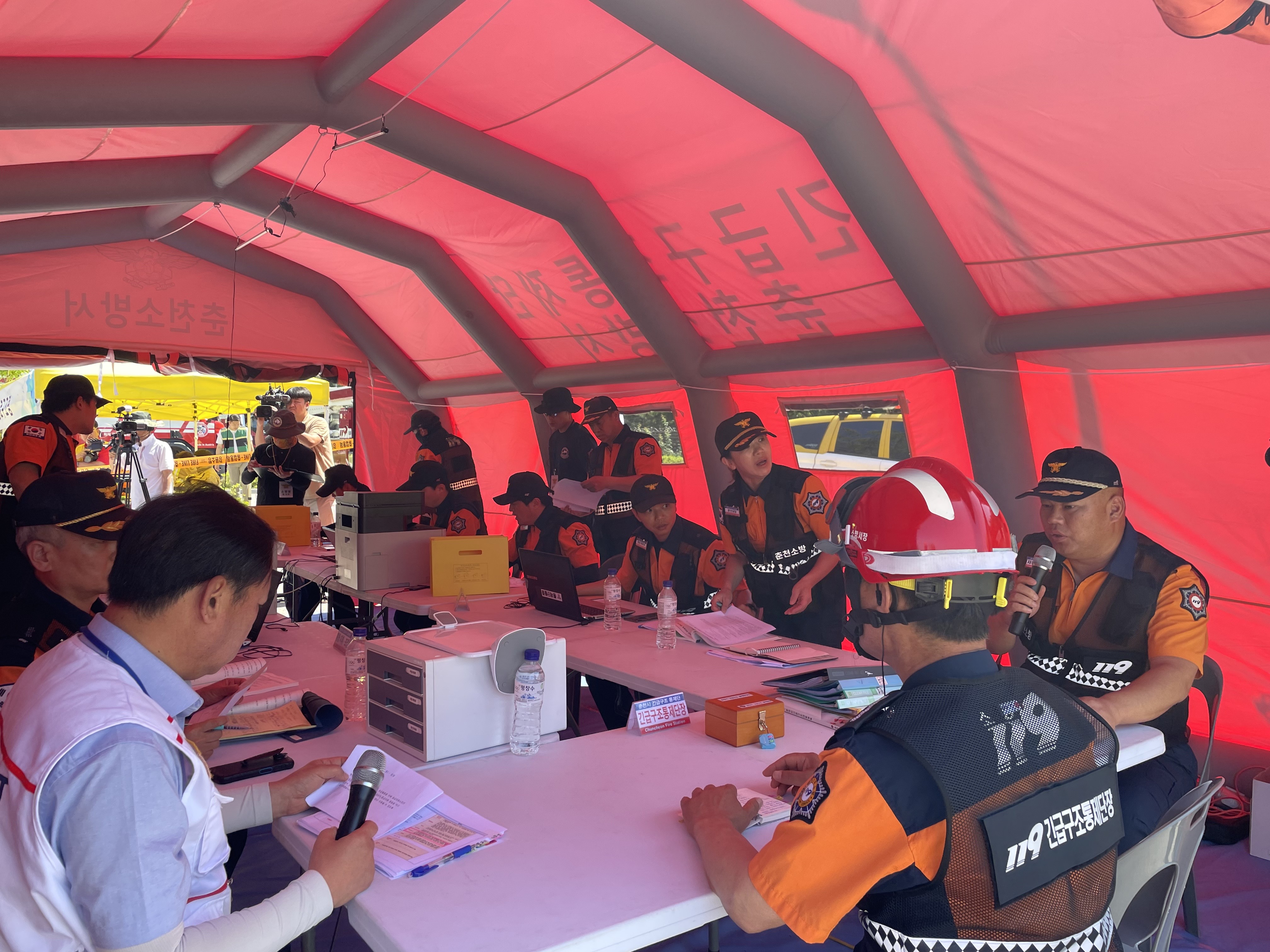 〇 최근 빈발하고 있는 지진을 주제로 진행된 이번 훈련은 김진태 도지사와 권혁열 도의회의장을 비롯해 안전건설위원회 박기영 위원장과 이기찬 의원, 양숙희 의원, 최재민 의원, 최재석 의원, 그리고 박범정 춘천경찰서장 등 많은 기관 단체장이 참석한 가운데 진행됐다.