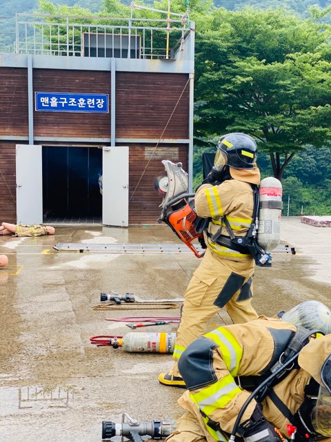 폭염 속 현장에 투입되는 소방대원들은 20kg 이상의 보호장비를 착용한 채 화재진압, 구조·구급 활동은 물론 벌집 제거까지 수행하고 있다. 일부 현장은 절단기·도끼·랜턴 등 장비를 포함하면 40kg 가까운 무게를 견뎌야 해 탈수·열경련 등 온열질환 위험에 직접 노출된다.