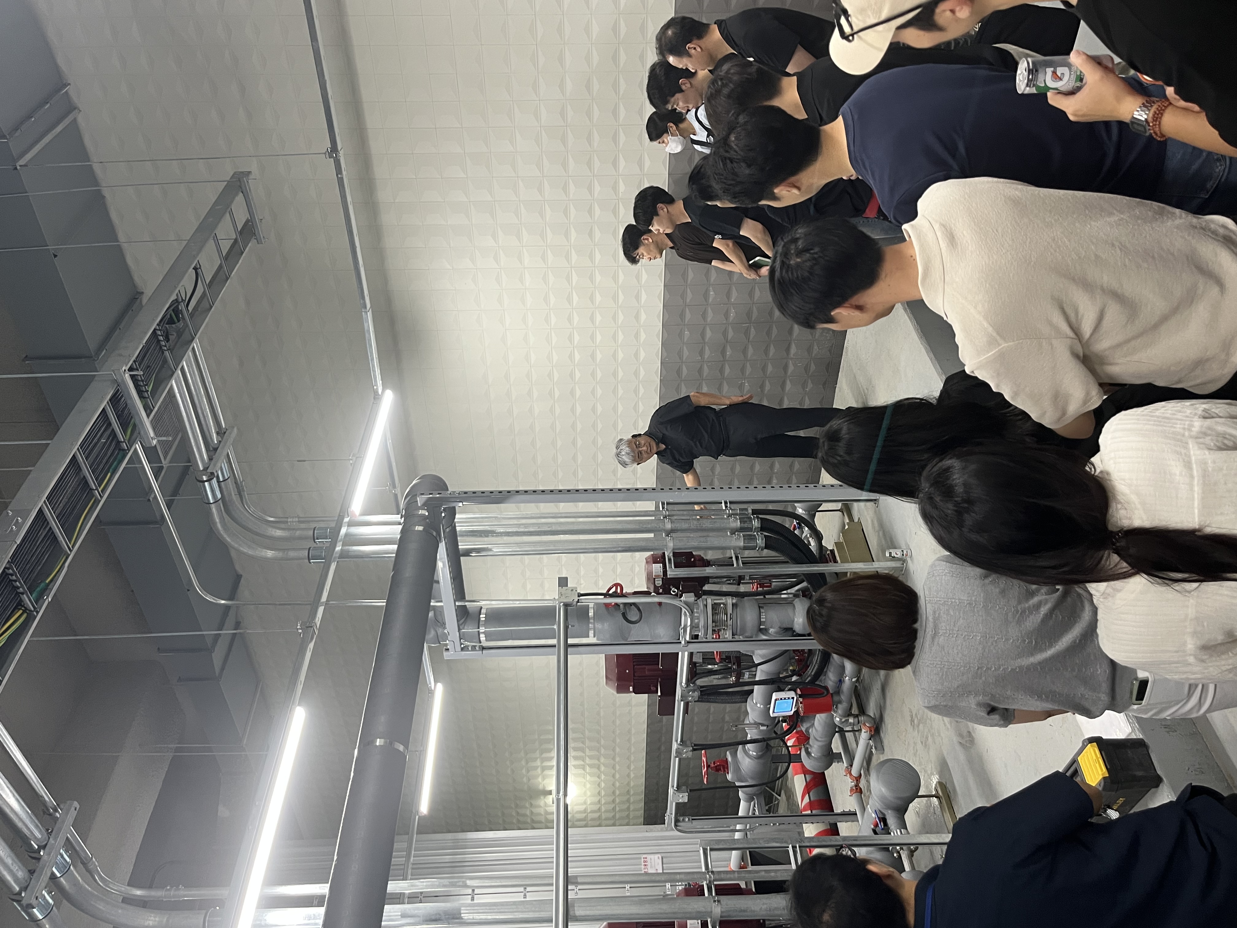 〇 주요 교육 내용으로는 ▲ 소화설비 펌프 성능시험 및 기동 확인 ▲ 자동화재탐지설비 수신반 점검, 비상방송설비 단락시험 ▲ 제연설비(차압, 개방력, 방연풍속) 점검 및 비상전원 기동 확인 등으로, 전 과정이 실무 중심으로 구성됐다.