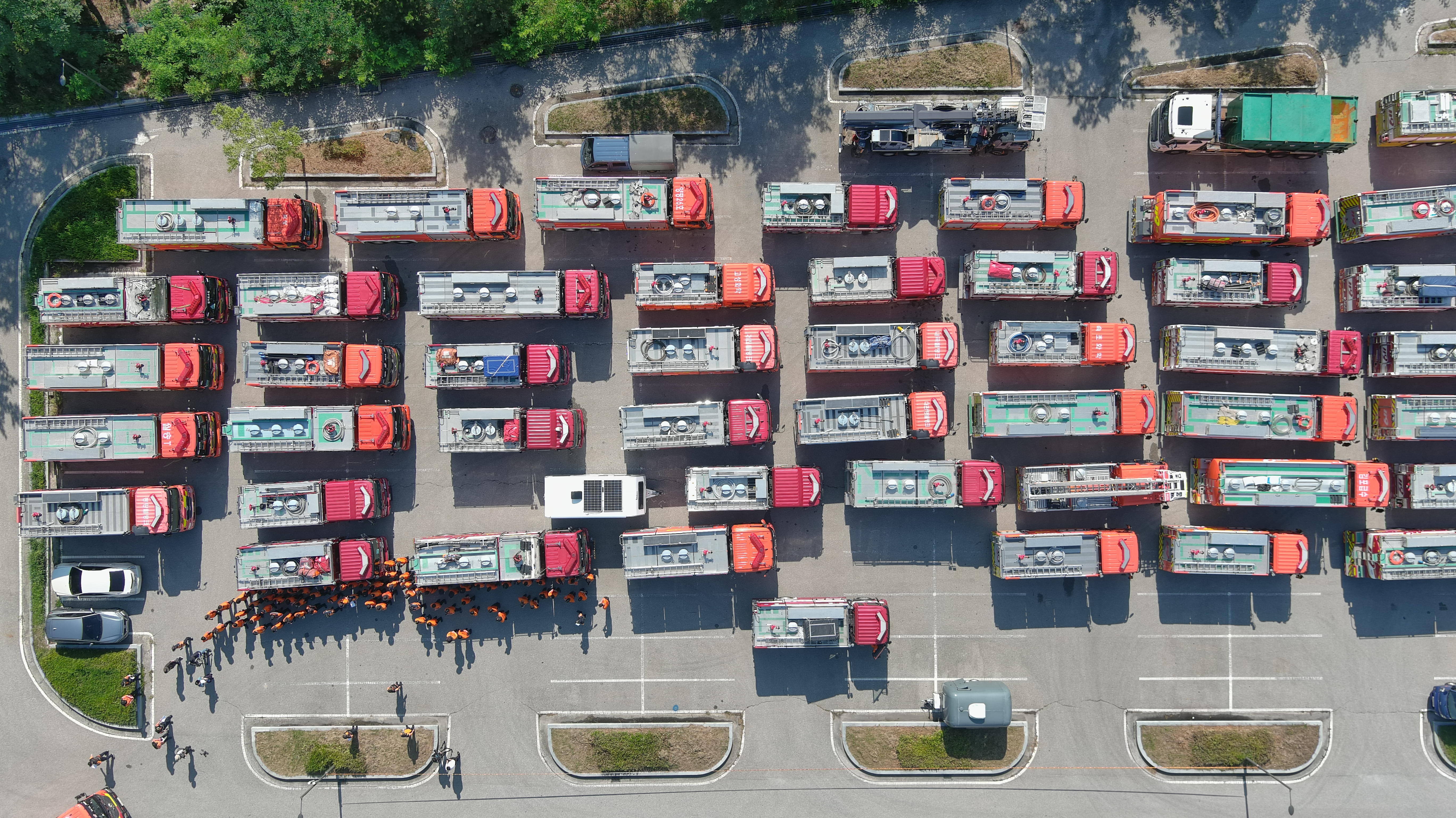 〇 한편, 1일부터는 차량대수는 변동없지만, 기존 소방펌프차를 담수량이 큰 물탱크차량으로 교체해 1일 3천톤이 급수된다.