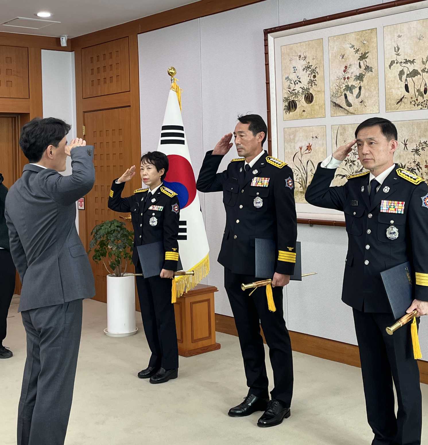 ○ 김진태 지사는 승진자들에게 계급장과 지휘봉을 직접 수여하며, 맡은 직무에서 책임감을 갖고 현장 대응 역량을 더욱 높여 줄 것을 당부했다.