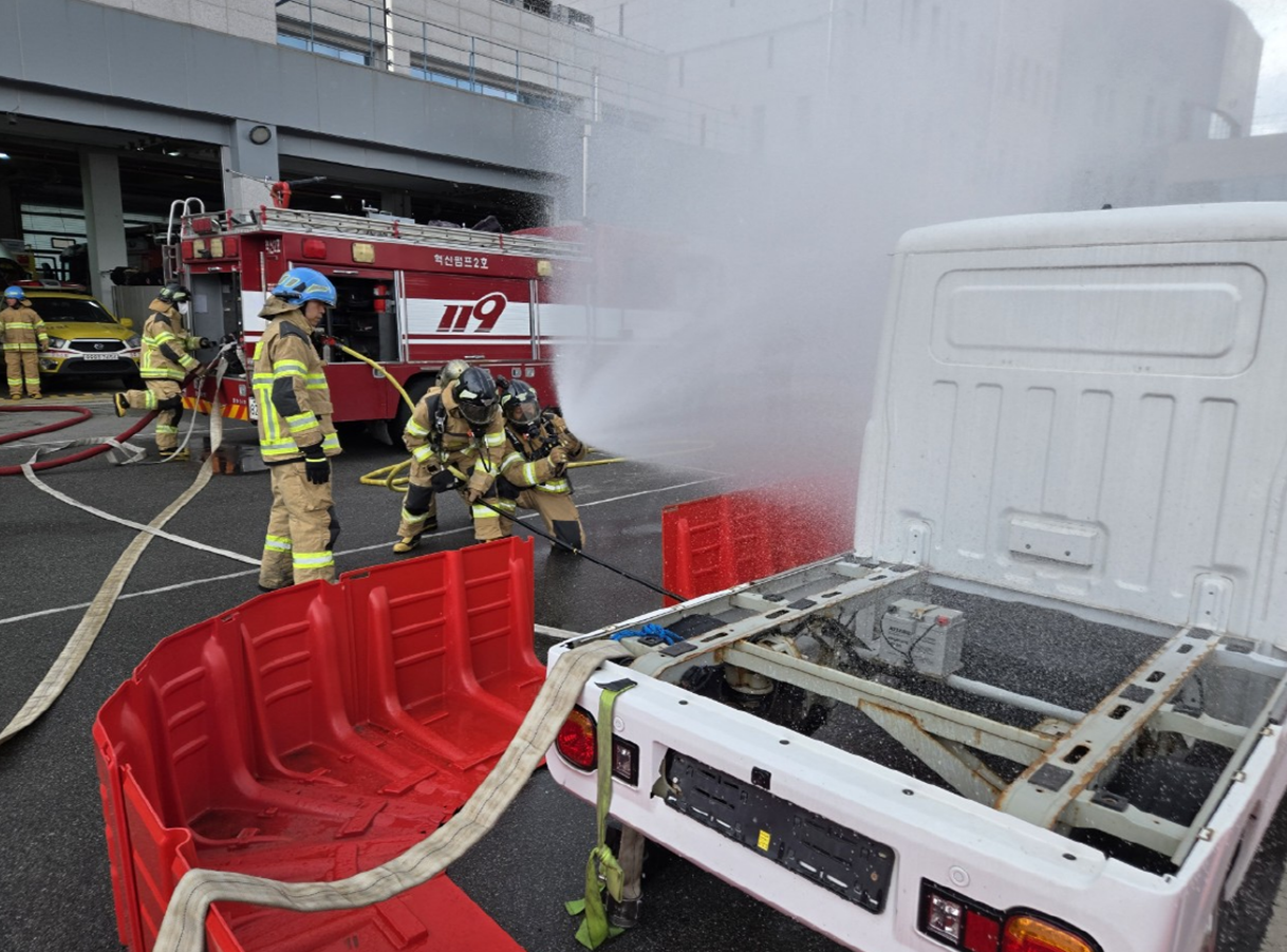 ○ 1주차는 행정 역량 내실화를 위해 소방서 행정부서를 순환하며 공문서 작성, 내부 보고 방법 등 소방 공직자로서 갖춰야 할 기초 행정지식을 실무 중심으로 학습하고, 2주차에는 소방서 직할 119안전센터에서 화재 유형별 표준작전절차(SOP) 숙지, 소방차량 및 장비 점검·조작 훈련 등을 통해 실전 대응력을 높인다.
