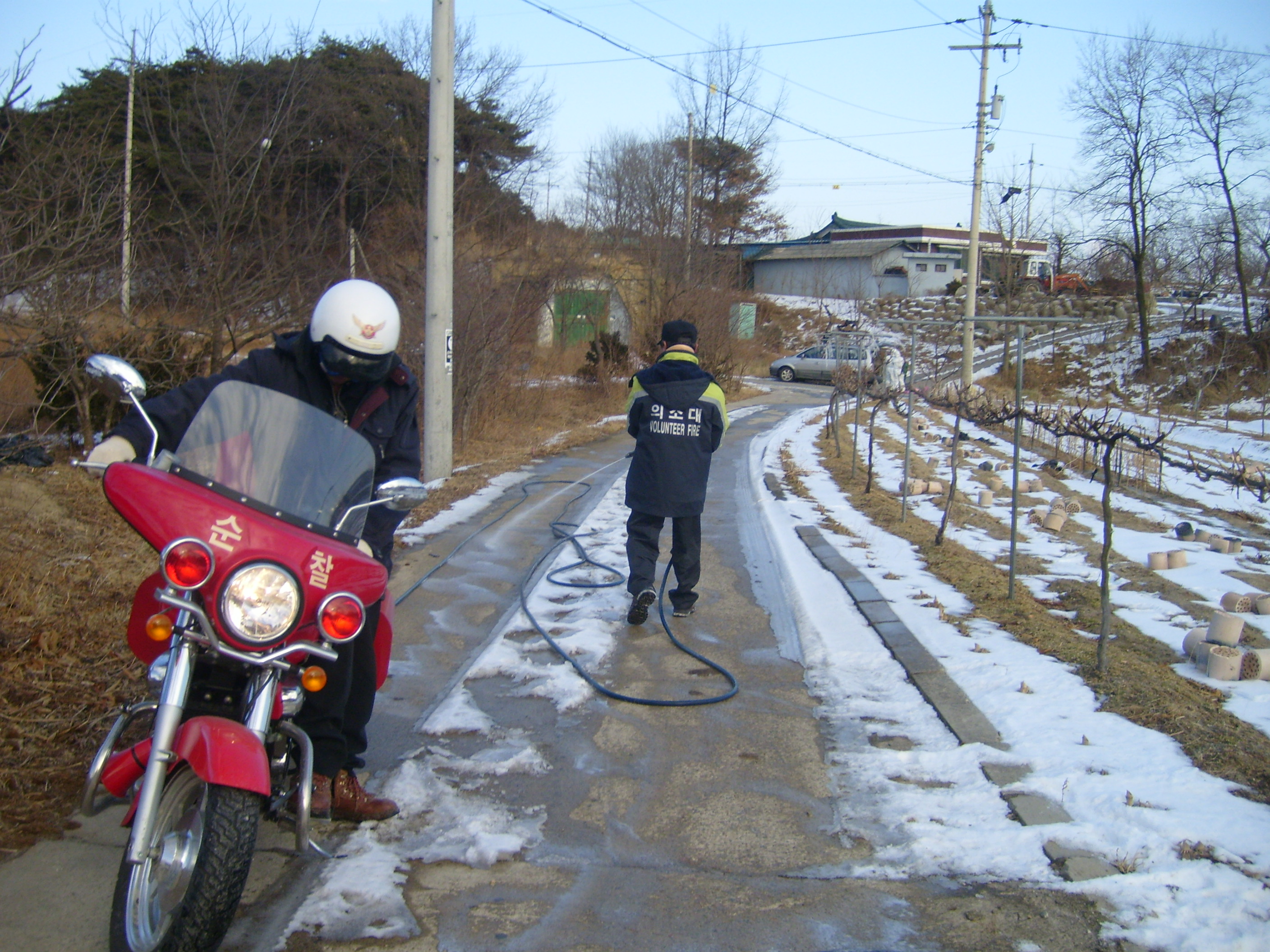 방역차와 비키라를 이용하여 관내에서 방역활동을 하였습니다