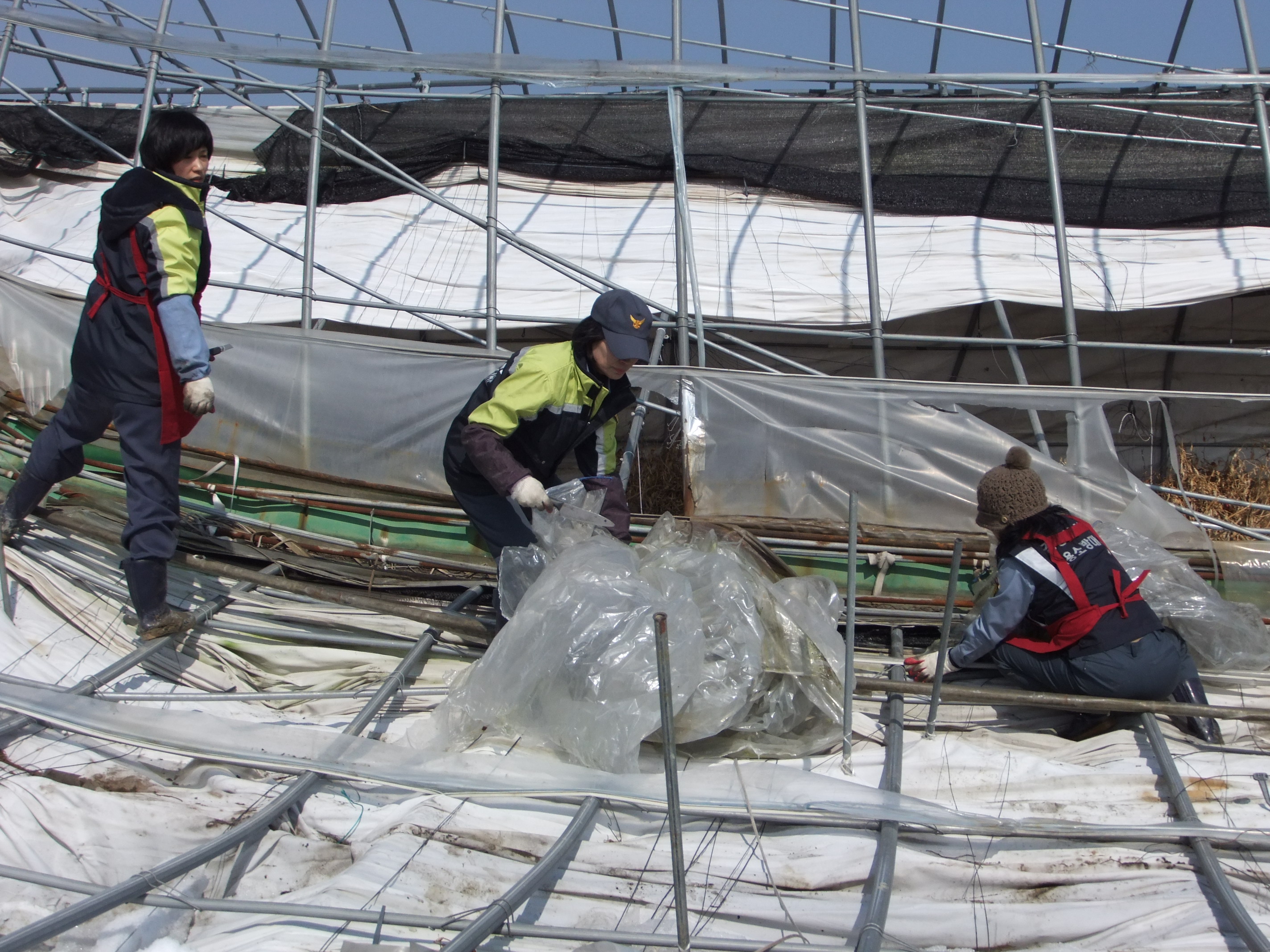 무너진 비닐하우스 잔해제거작업
