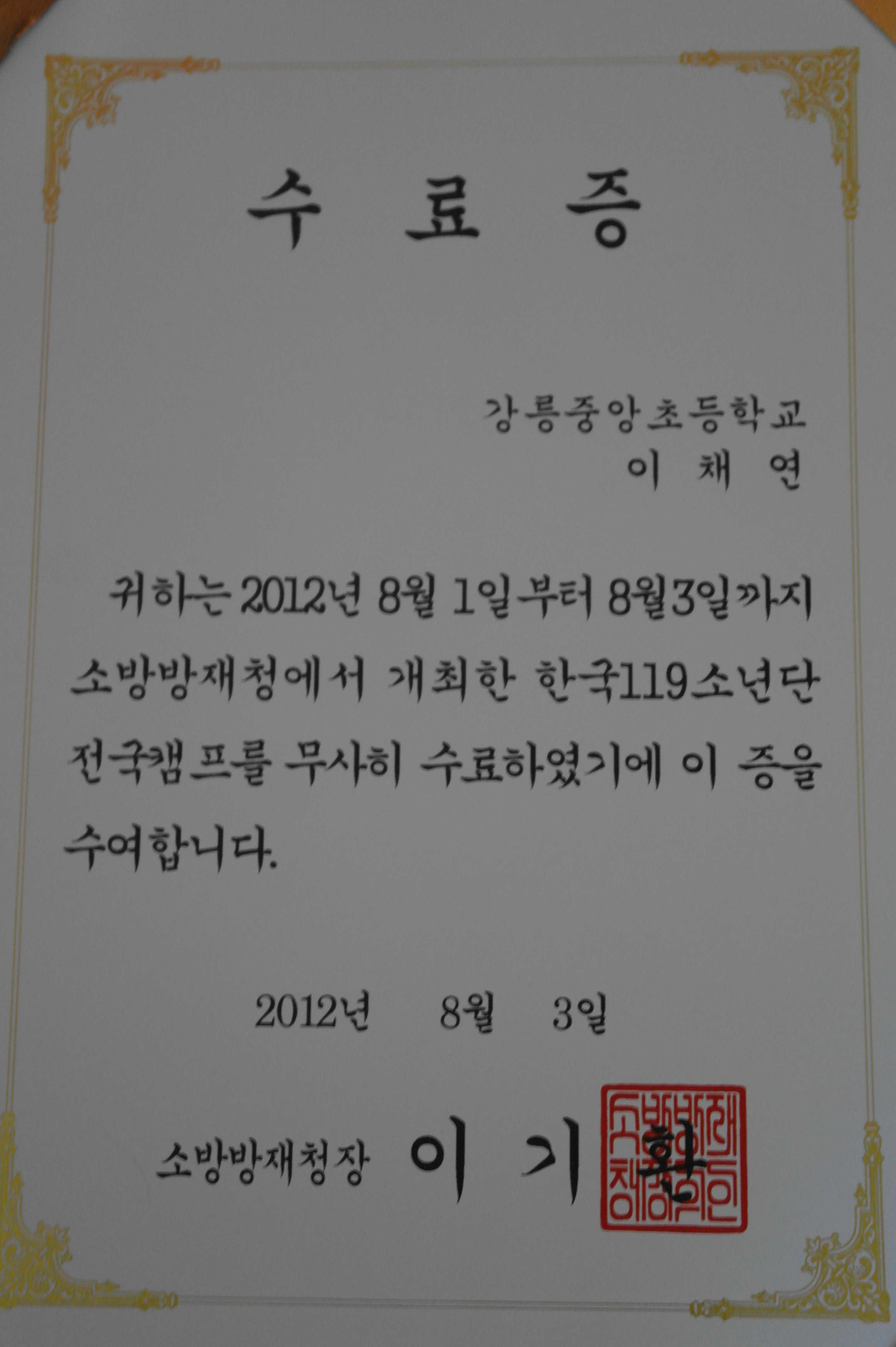 에서 개최된 제 3회 한국119소년단 전국캠프에 강원도 대표로