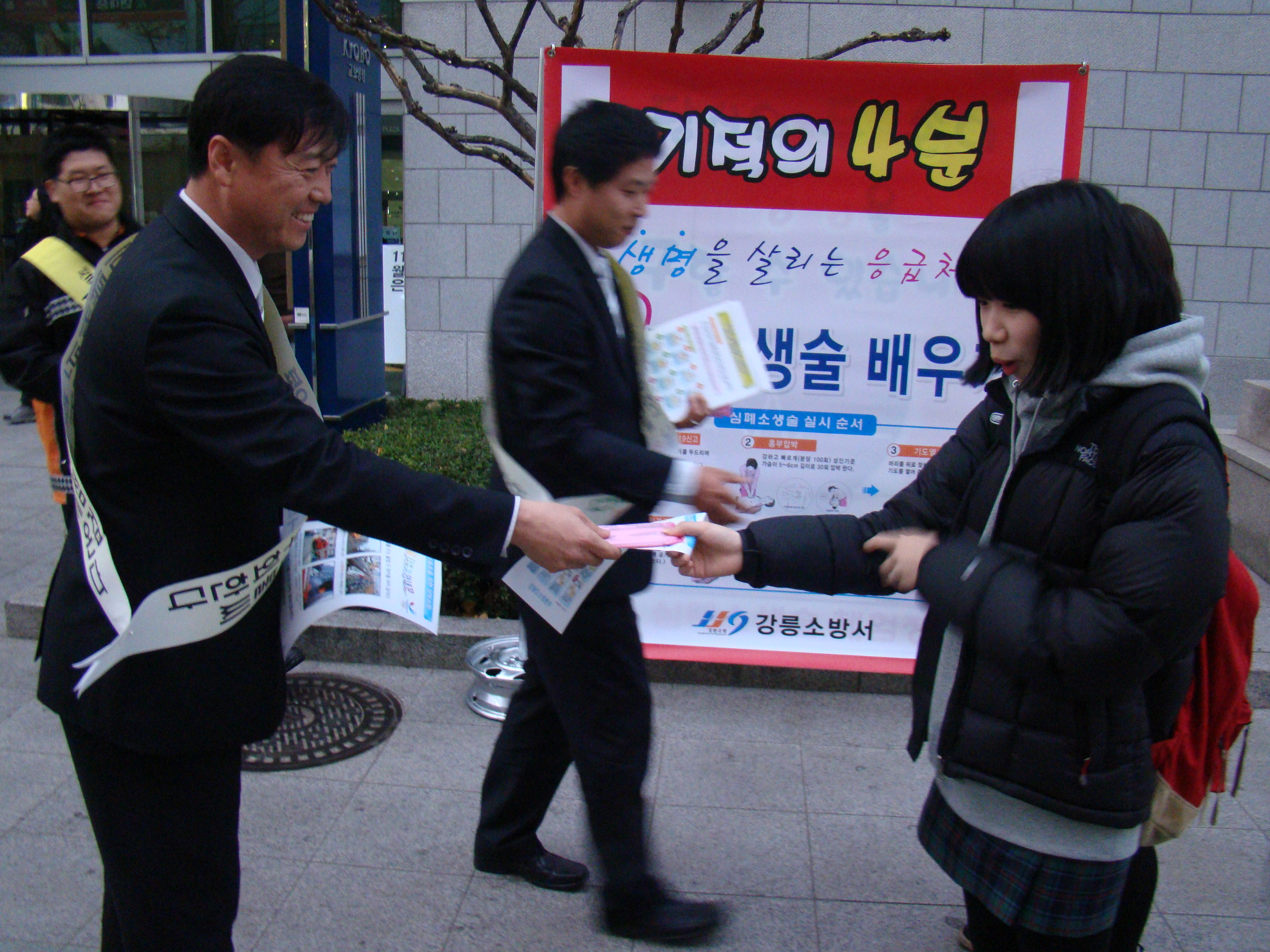 | 437 | 전직소방관들과 함께 소화기 및 화재경보기 데이 캠페인 | 강릉소방서 | 2011-11-21 | 871 | |
