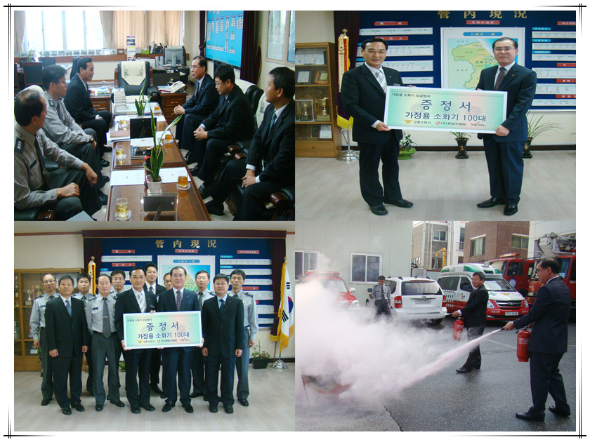 강릉소방서(서 장 : 김 기 성)는 2009. 10. 14(수) 오후2시 서장실에서 소화기 무료기증 행사를 개최하였다.