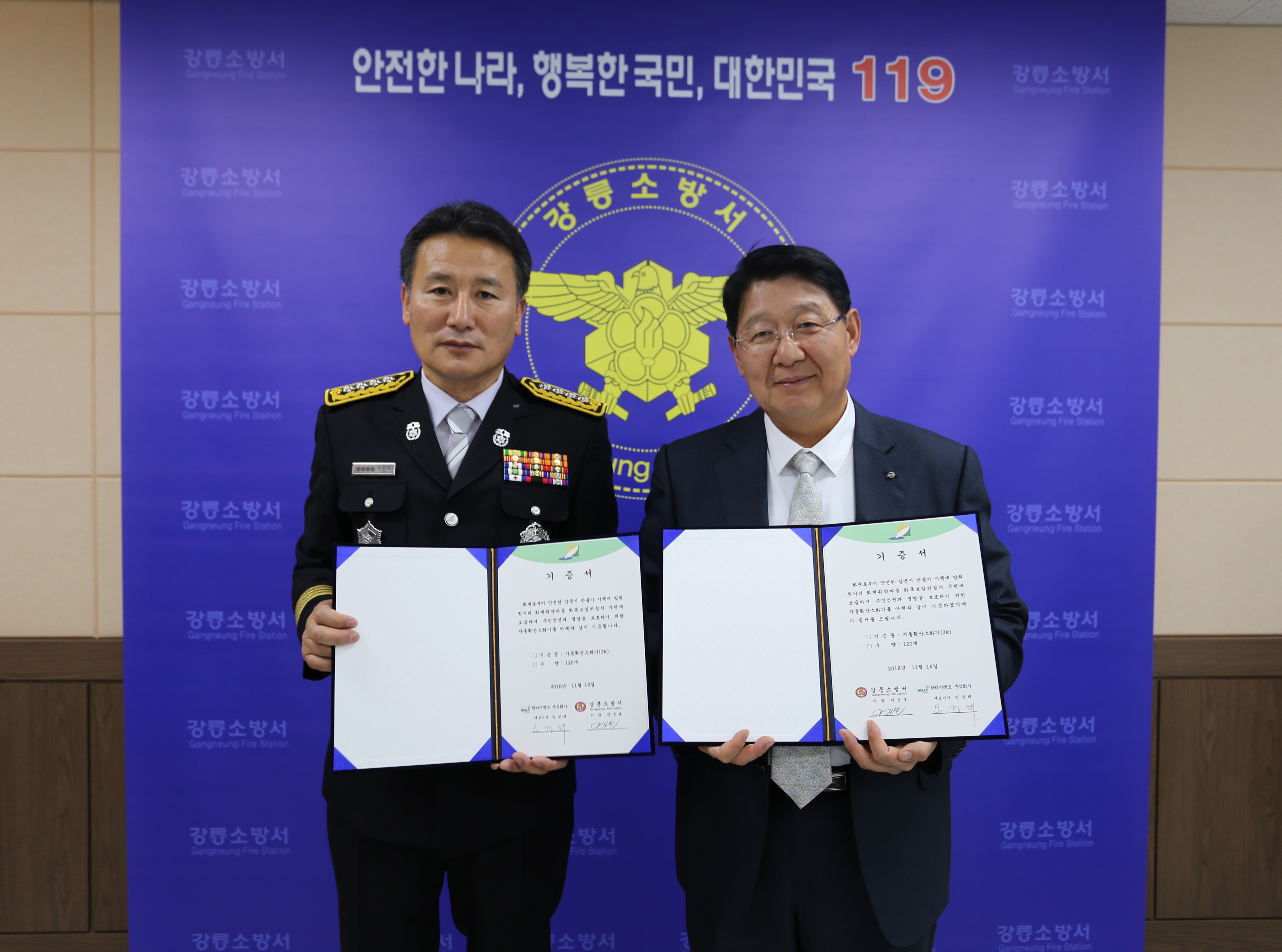 기증물품 : 자동확산소화기 120개