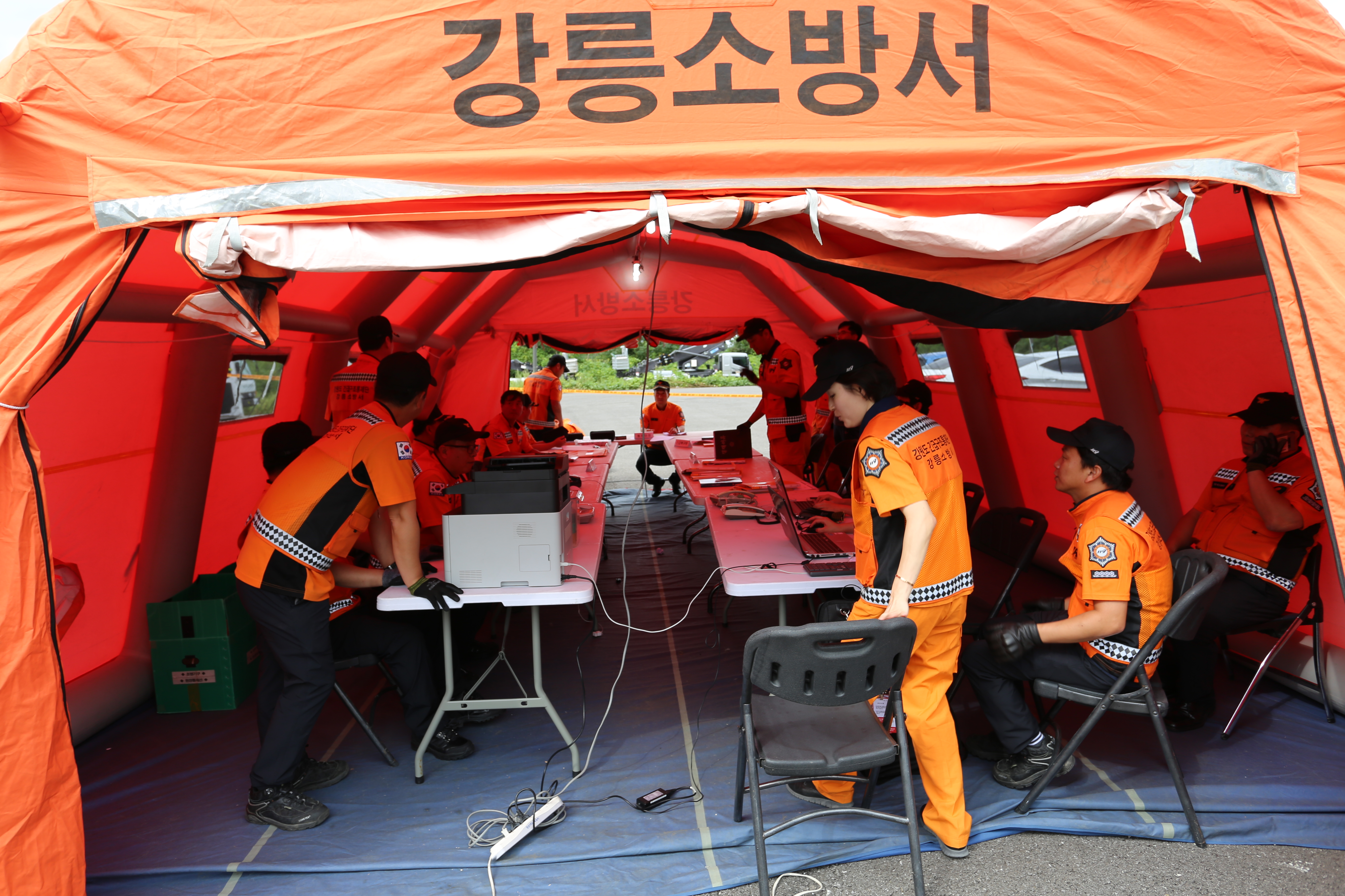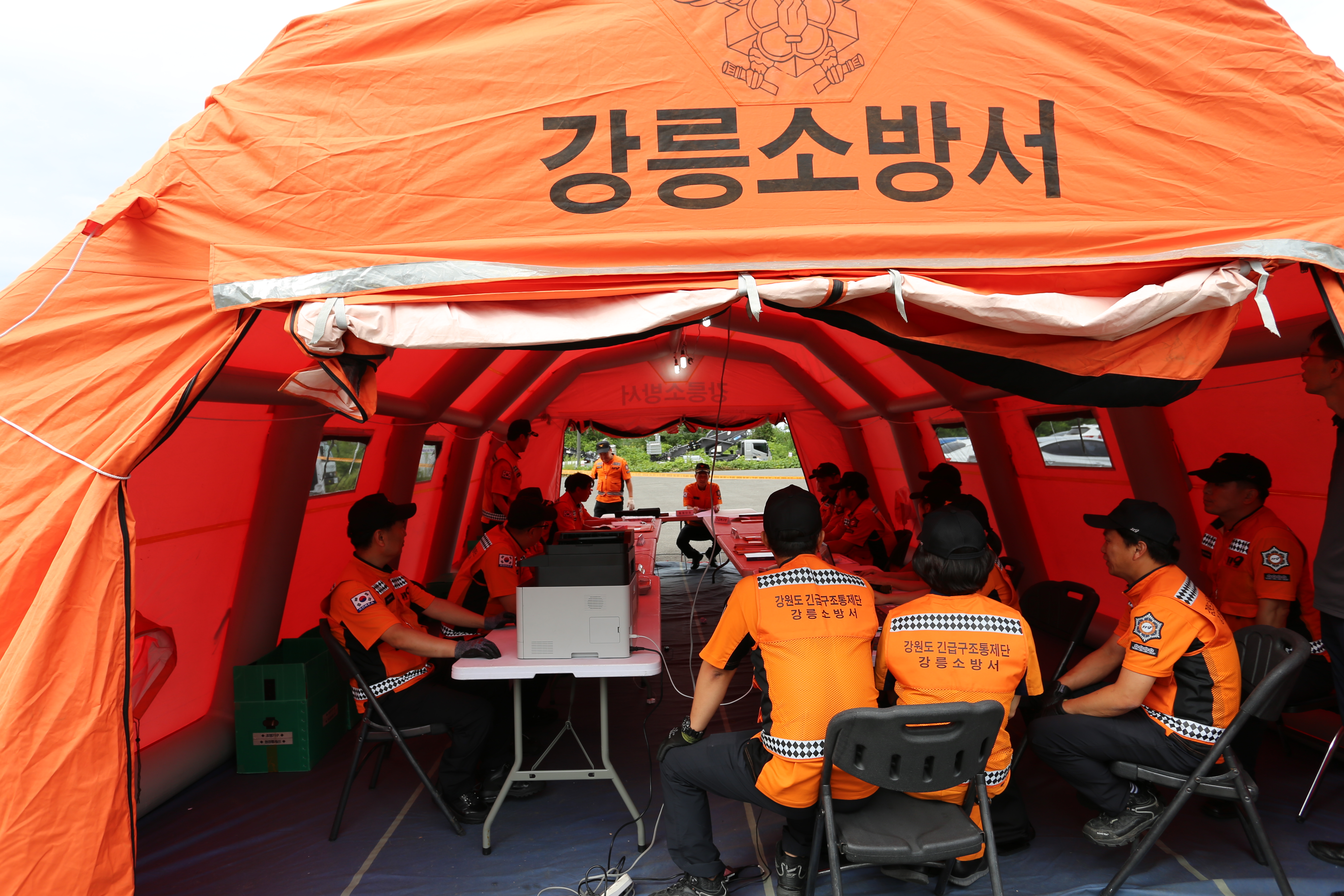 강릉시 아레나 경기장 화재 및 건물붕괴로 인한 다수사상자 발생 및 관람객 대피 지연인 상황을 가정하고 긴급구조 통제단 불시출동 훈련실시