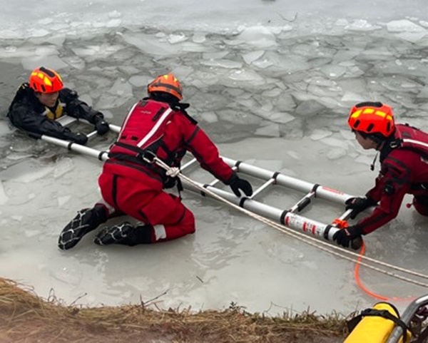 강릉소방서, 해빙기 빙상구조 현장 실무 훈련 실시