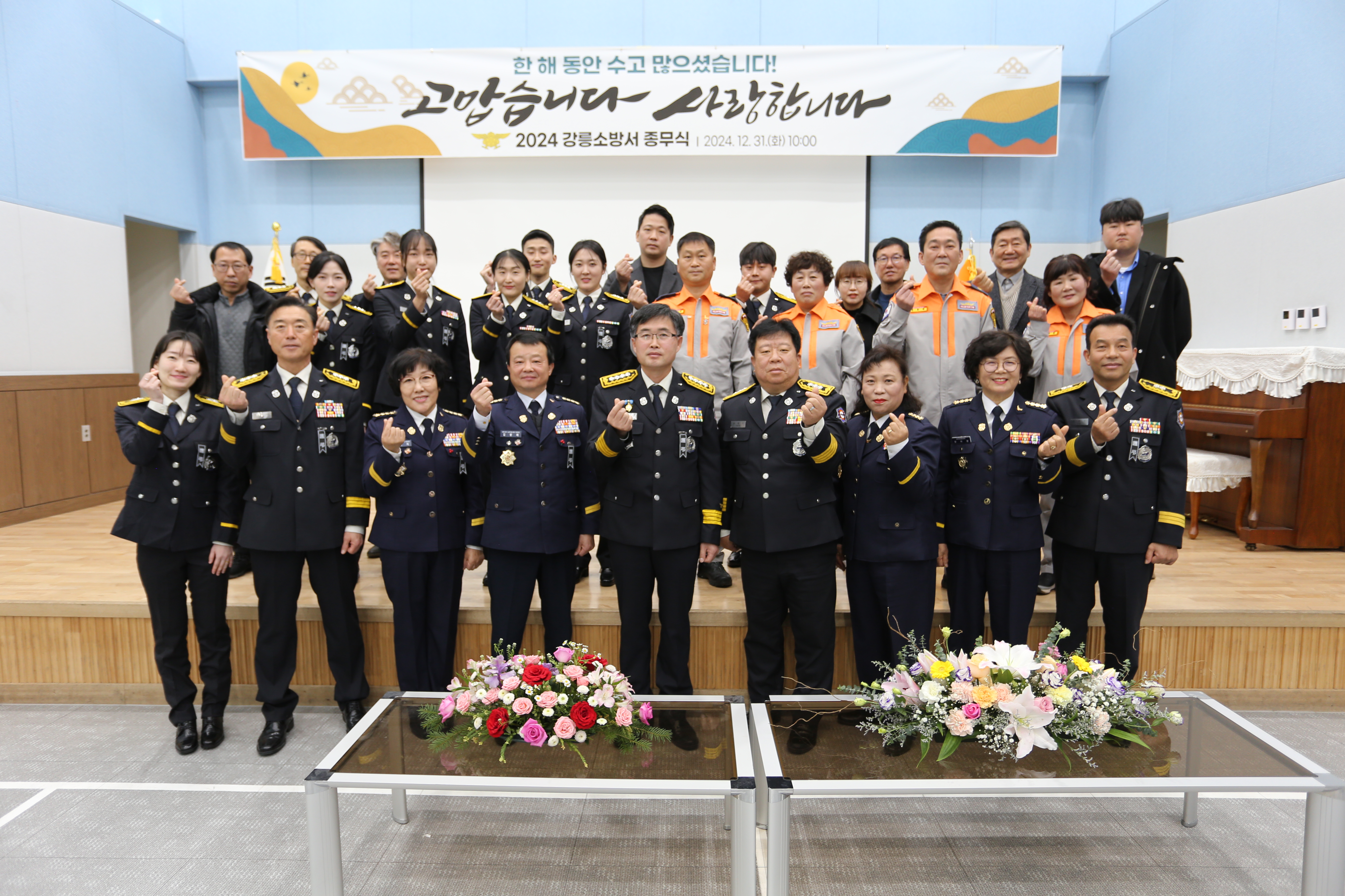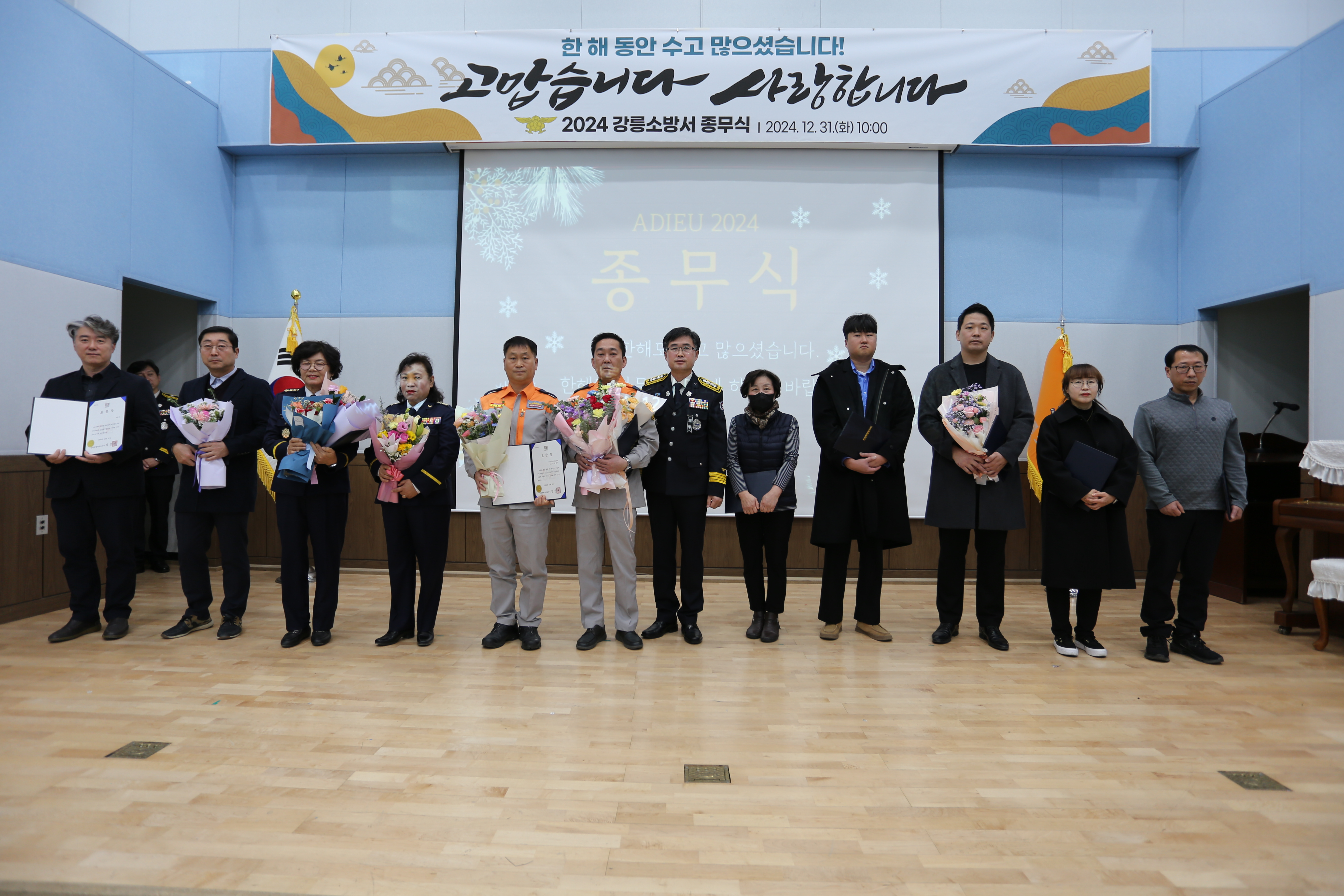 소방공무원 및 민간 수상자 17명을 포함한 80여명이 참석한 가운데 2024년 종무식이 있었습니다.