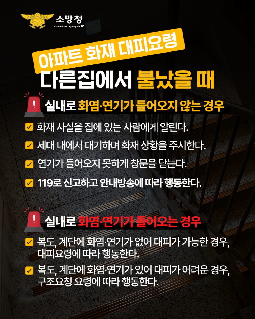 < 아파트 화재 대피요령 | 다른 집에서 불났을 때 >
