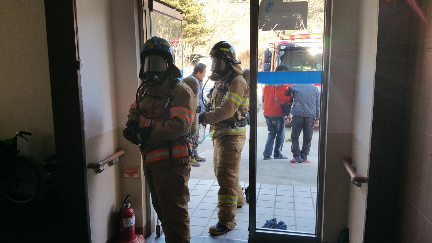 2016. 2. 4일 죽왕면 인정리 노인복지시설 효도원에서 어르신들과 소방훈련을 실시했습니다.