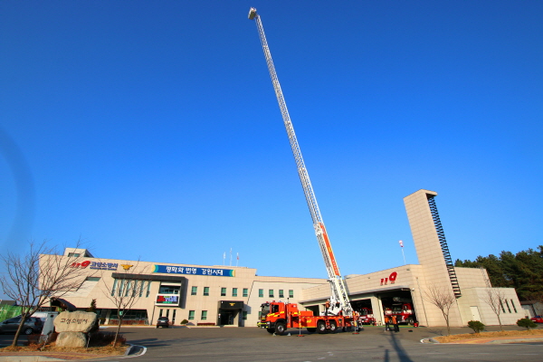 고성소방서(서장 유중근)는 지역 내 고층건축물(아파트) 증가에 따라 53m 전개가능한 최신형 고가사다리차량을 인수 및 배치했다.