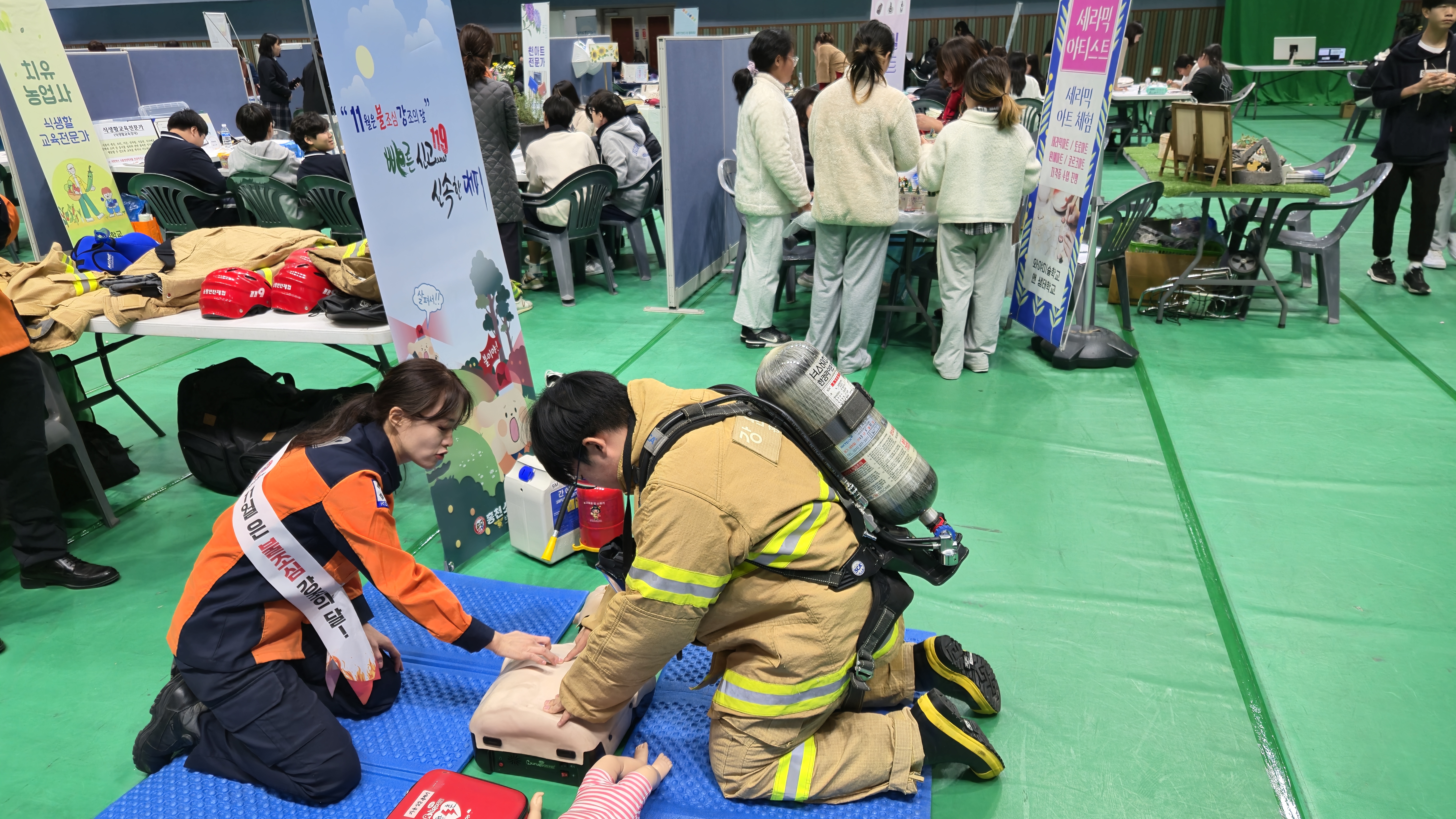 강원 홍천소방서(서장 김숙자)는 19일 홍천군 종합체육관에서 열린 청소년 진로 박람회에서 119안전체험부스를 운영했다고 밝혔다.