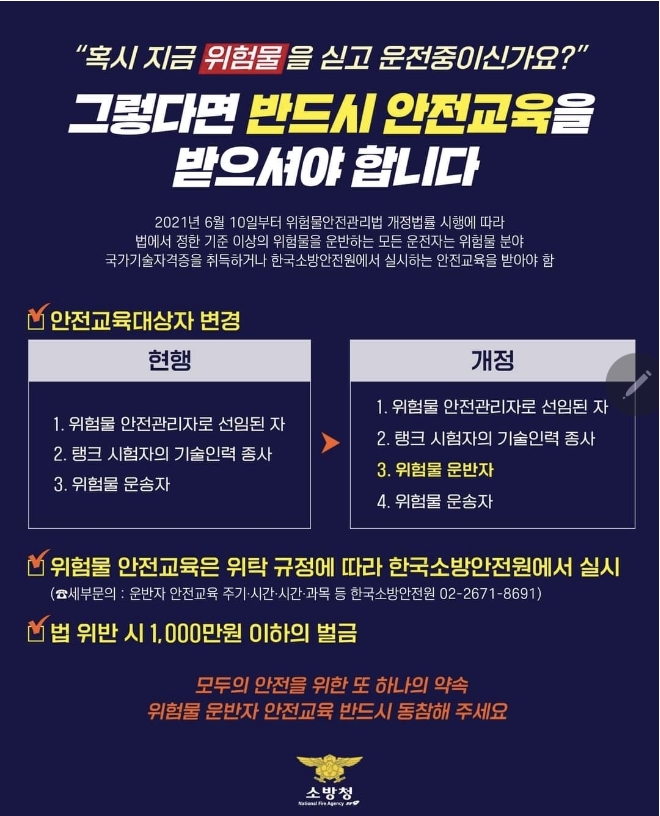 위험물 운반 운전자 안전교육 필수 이수
