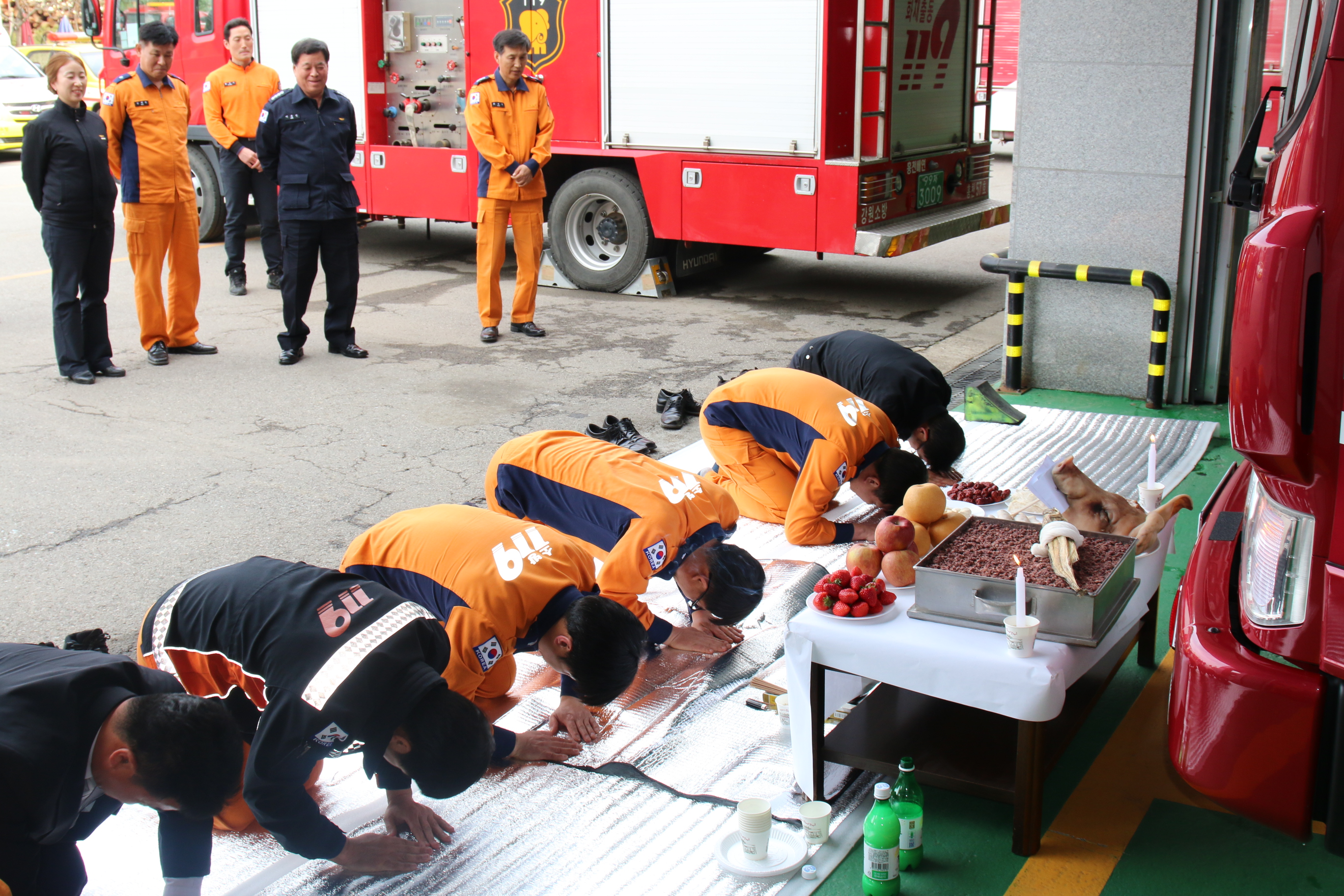홍천소방서에서는 서장님외 직원 20명이 참석한 가운데 지난 1(금) 오후 4시에 신규 입고된 소방 펌프차량 무사기원 및 안전운행을 위한 안전기원제를 개최하였다.