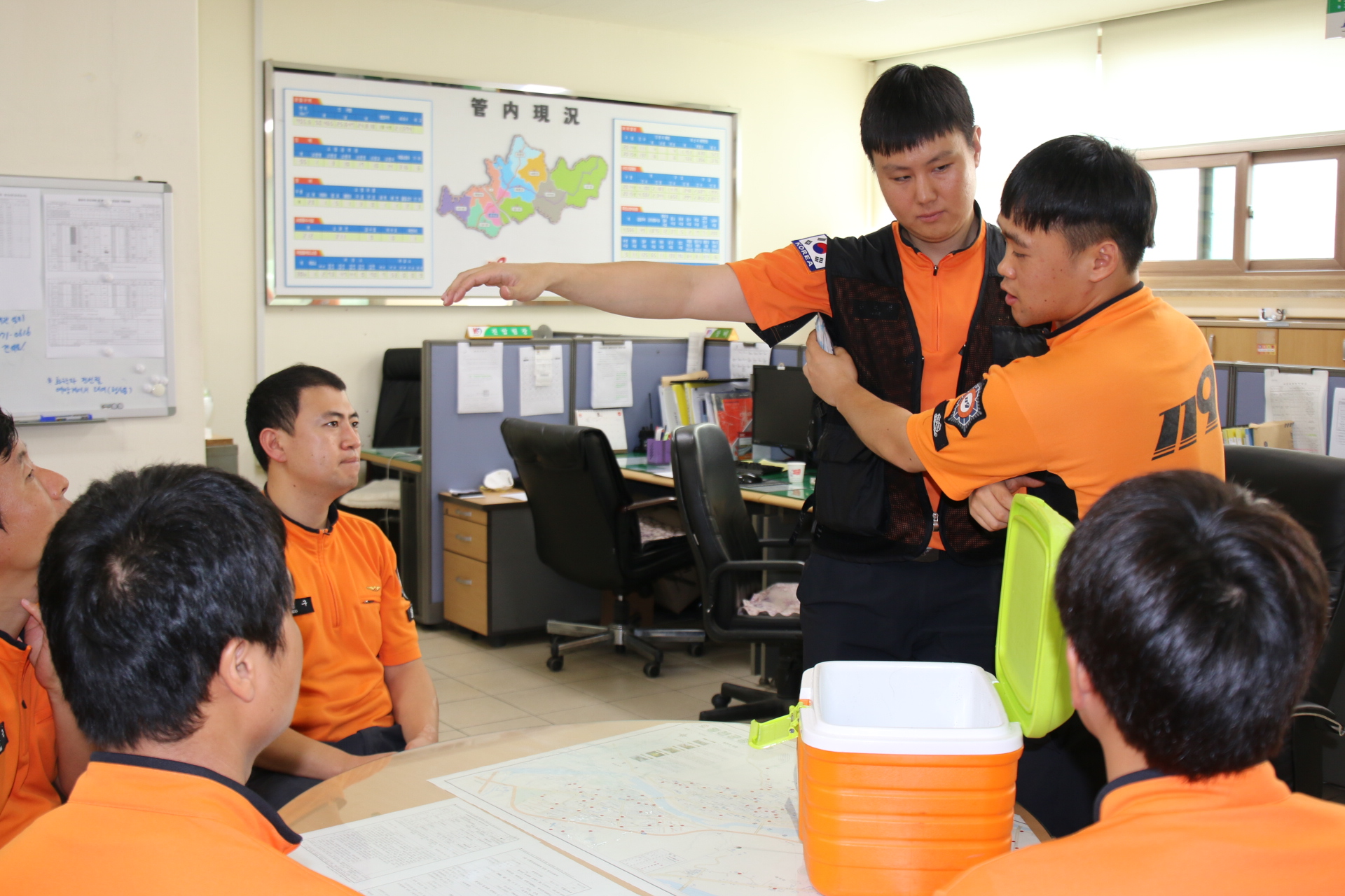 홍천소방서는 2일 오전 10시에 구급대원 및 펌뷸런스 대원을 대상으로 온열질환자 발생시 신속한 응급처치로 환자 상태 악화방지를 위하여 폭염대응장비(체온계, 생리식염수, 얼음조끼, 얼음팩, 정제소금, 구강용 전해질 용액, 물 스프레이 등) 점검 및 온열환자 응급처치 요령 교육을 실시하였다.