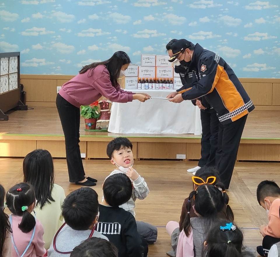 □ 우성유치원은 아이들의 원내행사인 ‘아나바다 활동’으로 발생한 수익금을 통해 소방관에게 감사한 마음을 전하고자 핫팩과 비타민음료를 기증하였다.