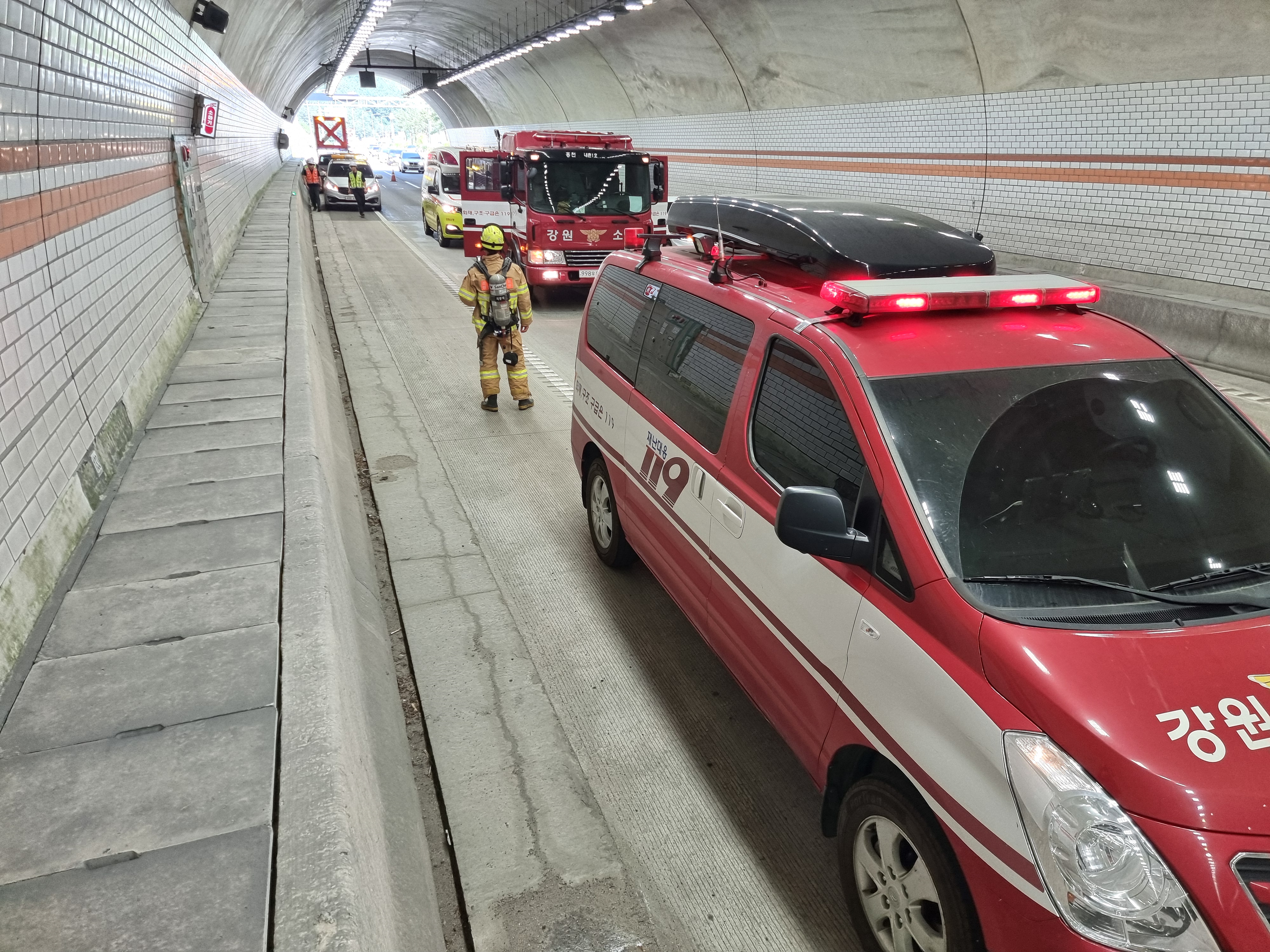 홍천소방서(서장 김숙자)는 13일, 내촌1터널에서 터널 내 화재 및 재난 상황 대응 능력을 강화하기 위해 유관기관과 장대터널 합동소방훈련을 실시했다고 밝혔다.