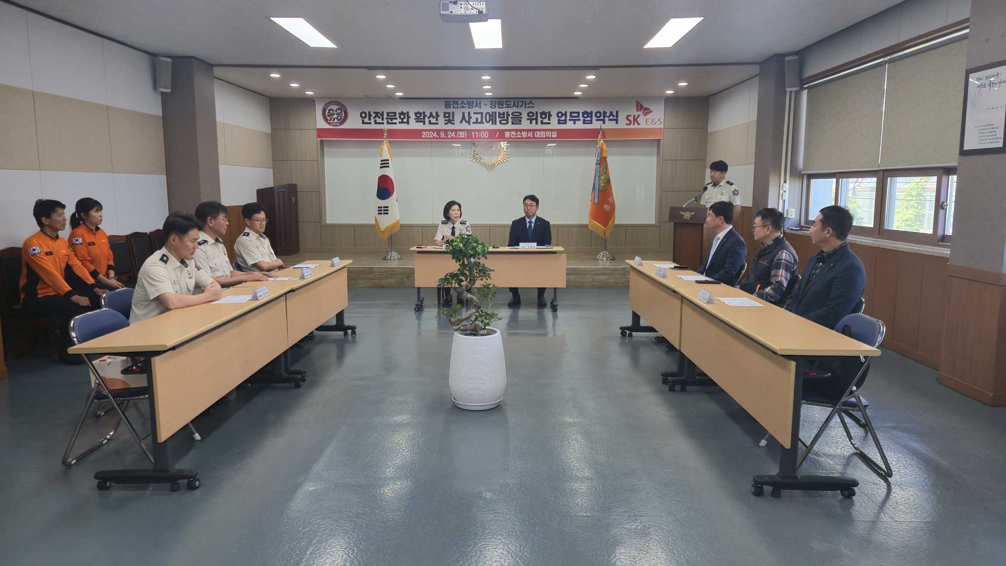 홍천소방서(서장 김숙자)는 24일 오전 11시 홍천소방서 대회의실에서 강원도시가스와 함께 업무협약(MOU)을 체결했다고 밝혔다.