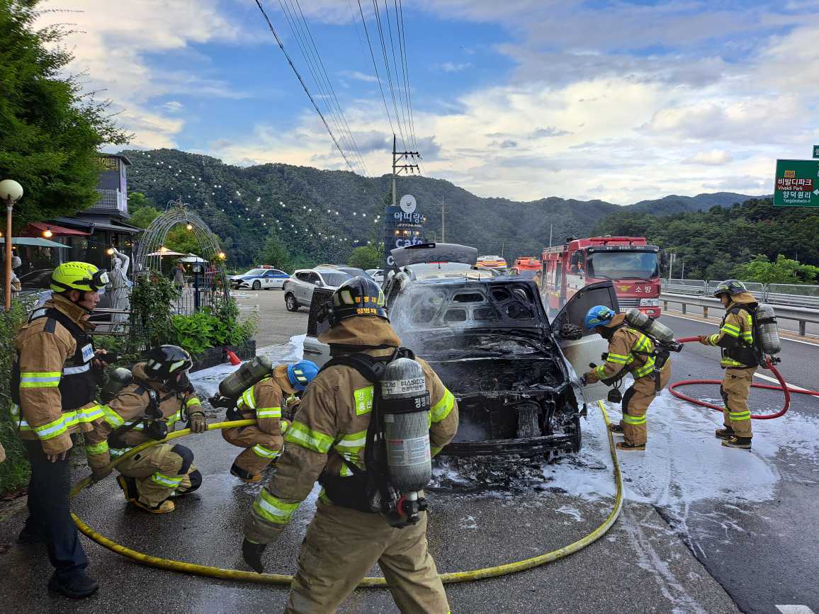 소방서에 따르면 차량 화재는 주로 엔진 이상과 열 등 기계적 요인이나 교통사고 등으로 발생한다. 차량에서 발화가 일어나면 각종 연료ㆍ오일 등 가연물로 쉽게 연소가 확대되기 때문에 차량용 소화기를 활용한 초기 진압이 가장 중요하다.