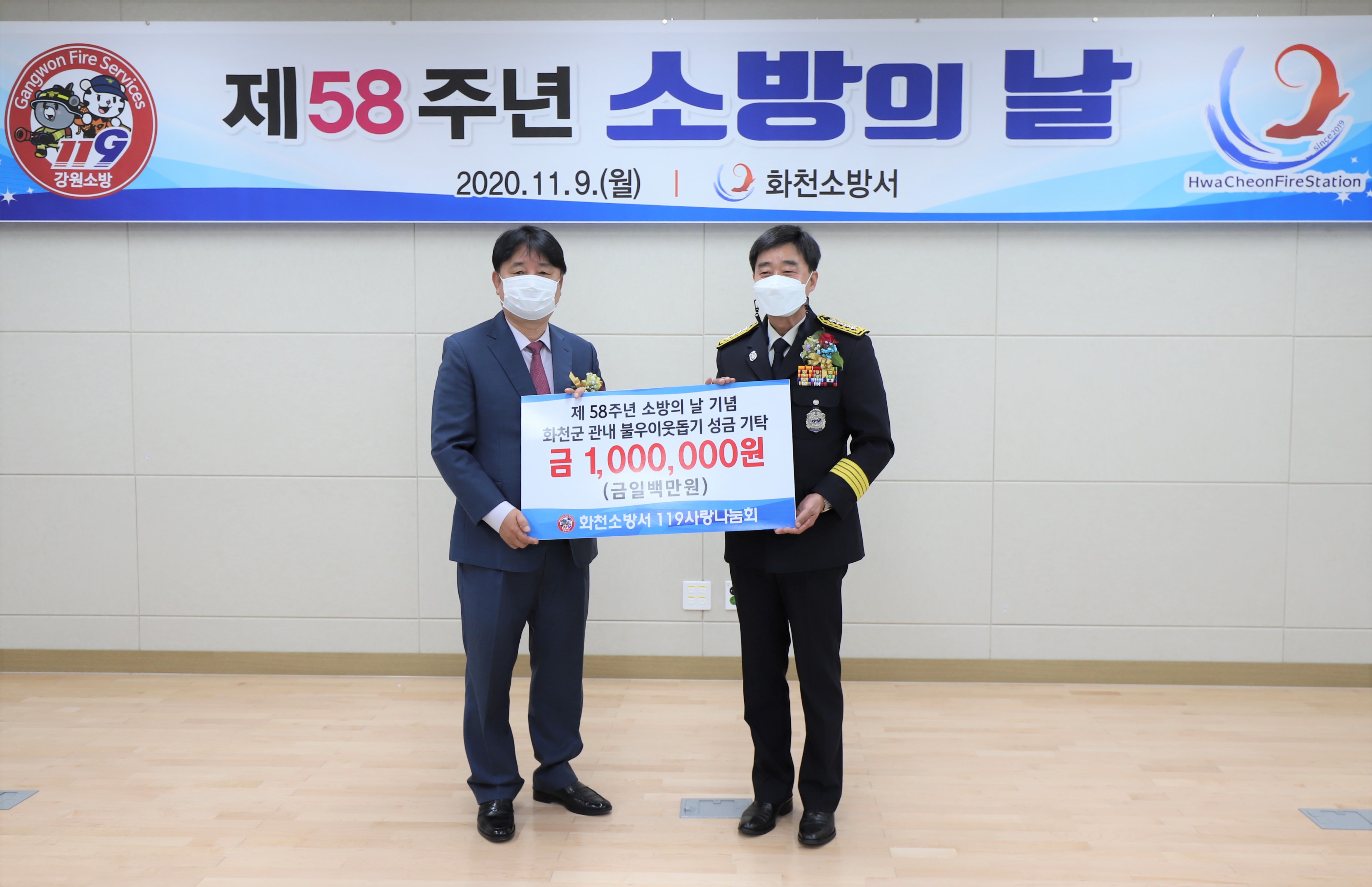소방의 날을 기념하여 직원들이 모금한 119사랑나눔회 회비 100만원을