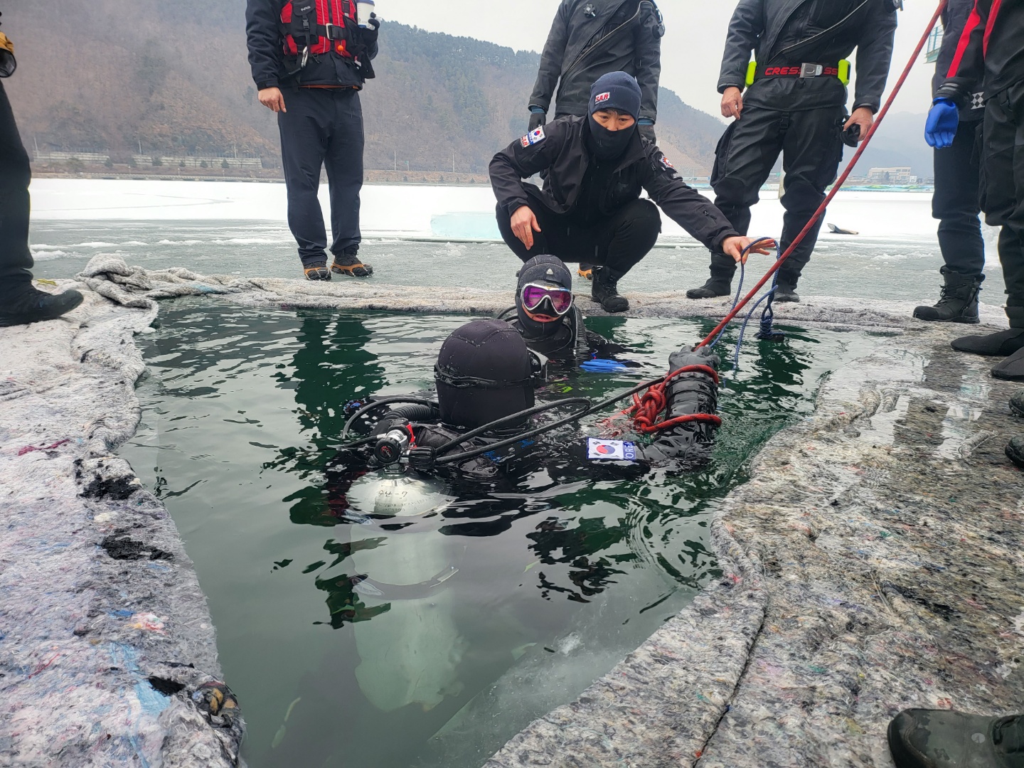 화천소방서는 1월 25일 화천 피니쉬타원 인근 하천에서 동계 수난구조 훈련을 실시했습니다.