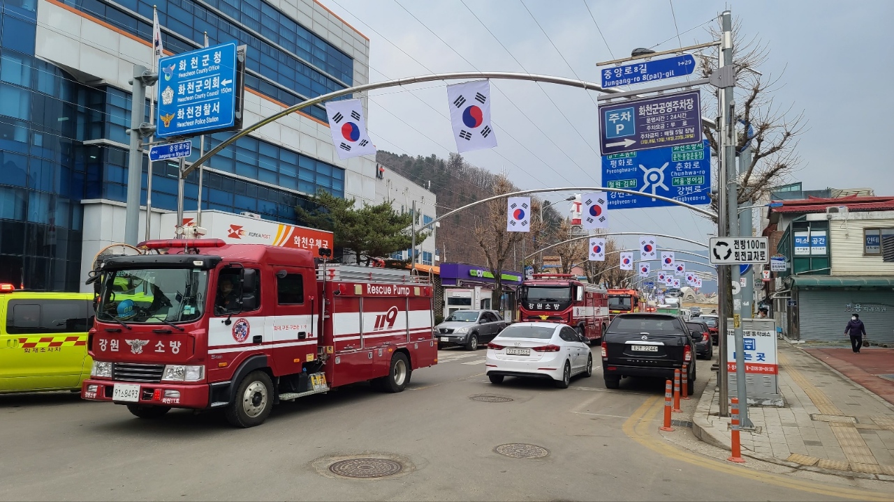 화천소방서는 평소 유동인구가 많아 재난 발생 시 다수 인명피해가 우려되는 화천시장, 화천시외버스터미널 등을 대상으로 지난 8일 오후 2시 ‘소방차 길터주기 훈련’을 실시했다고 밝혔다.