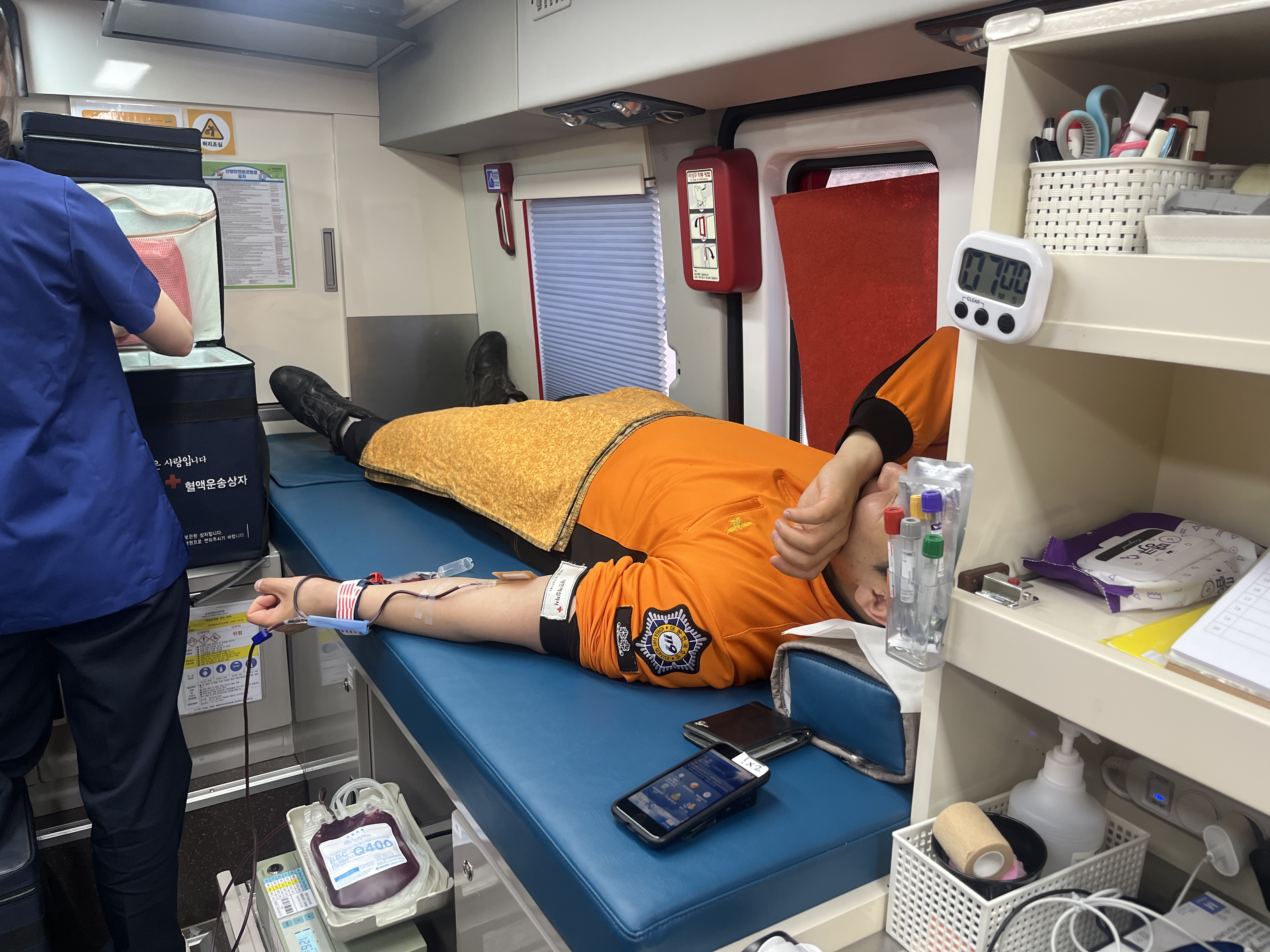 화천소방서(서장 최임수)는 1일 청사 주차장에 마련된 헌혈버스에서 소방공무원 20여 명이 사랑의 헌혈운동에 동참했다고 밝혔다.