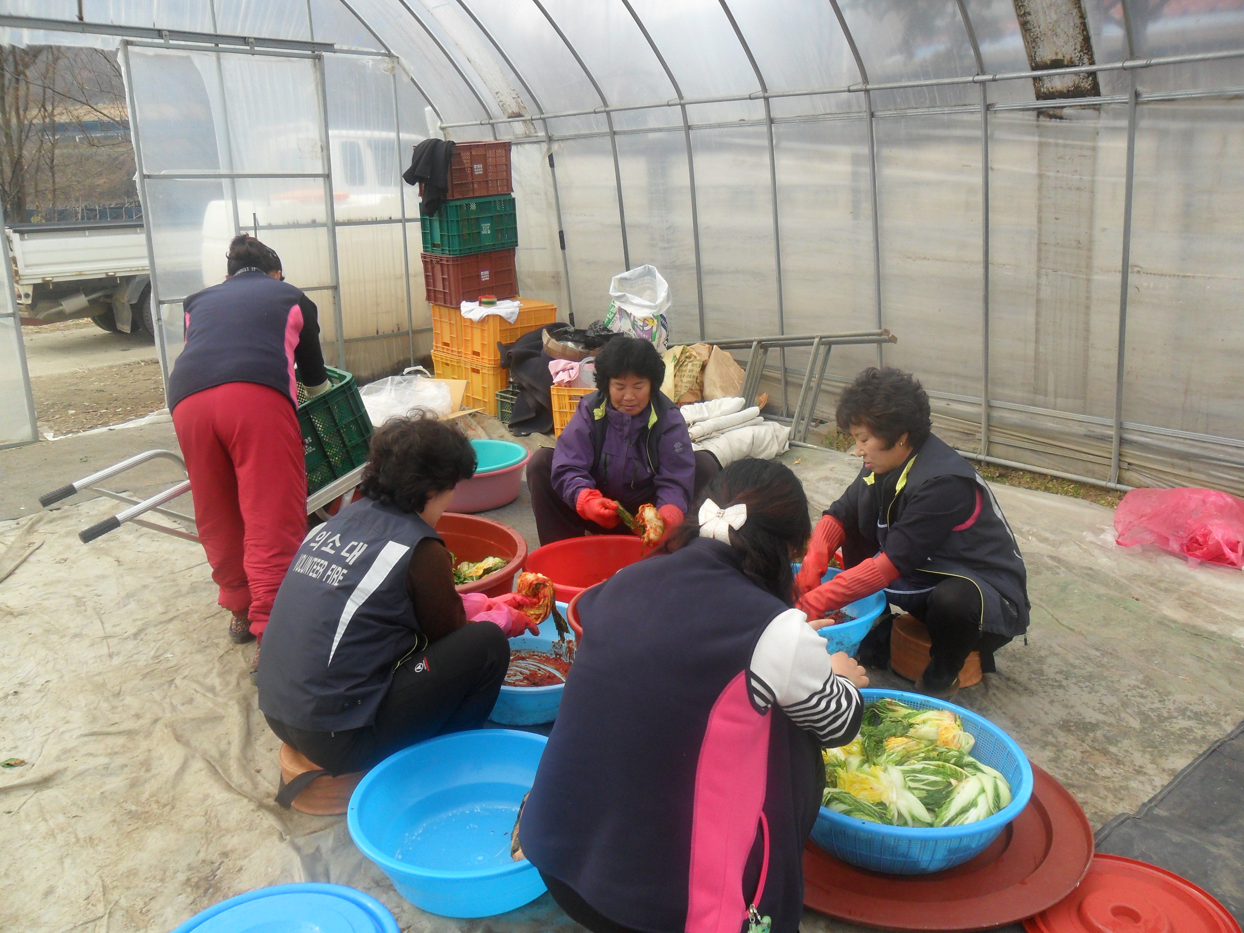 오전 9시부터 오후 16시까지 모여 배추 80포기정도를 절여 김장을