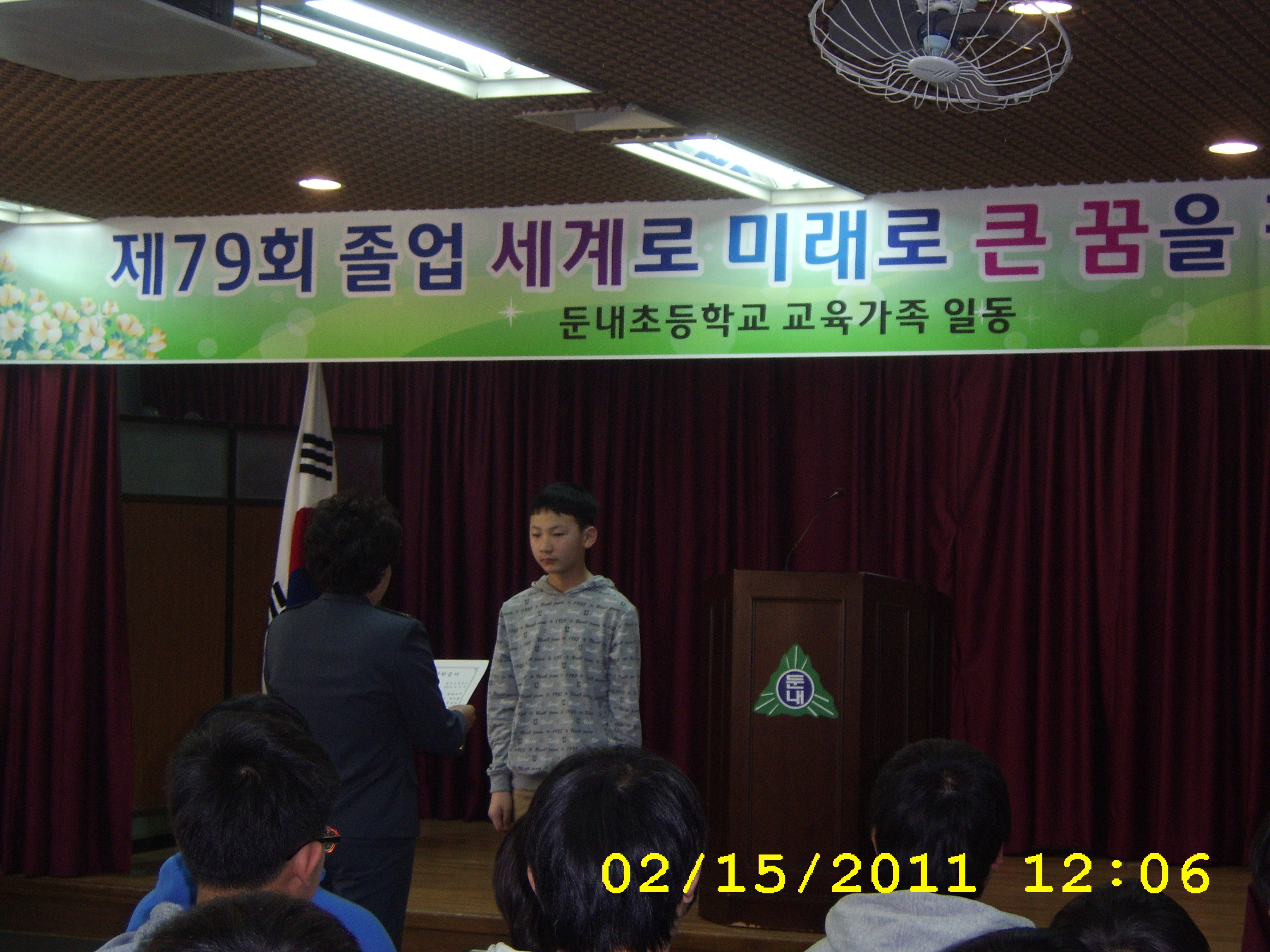 제 79회 둔내초등학교 졸업식에 참석하시어 졸업생1명에게 장학금을 전달하였습니다.