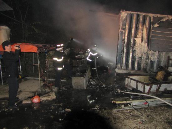 마을회관인근 컨테이너 화재 현장에 출동하여