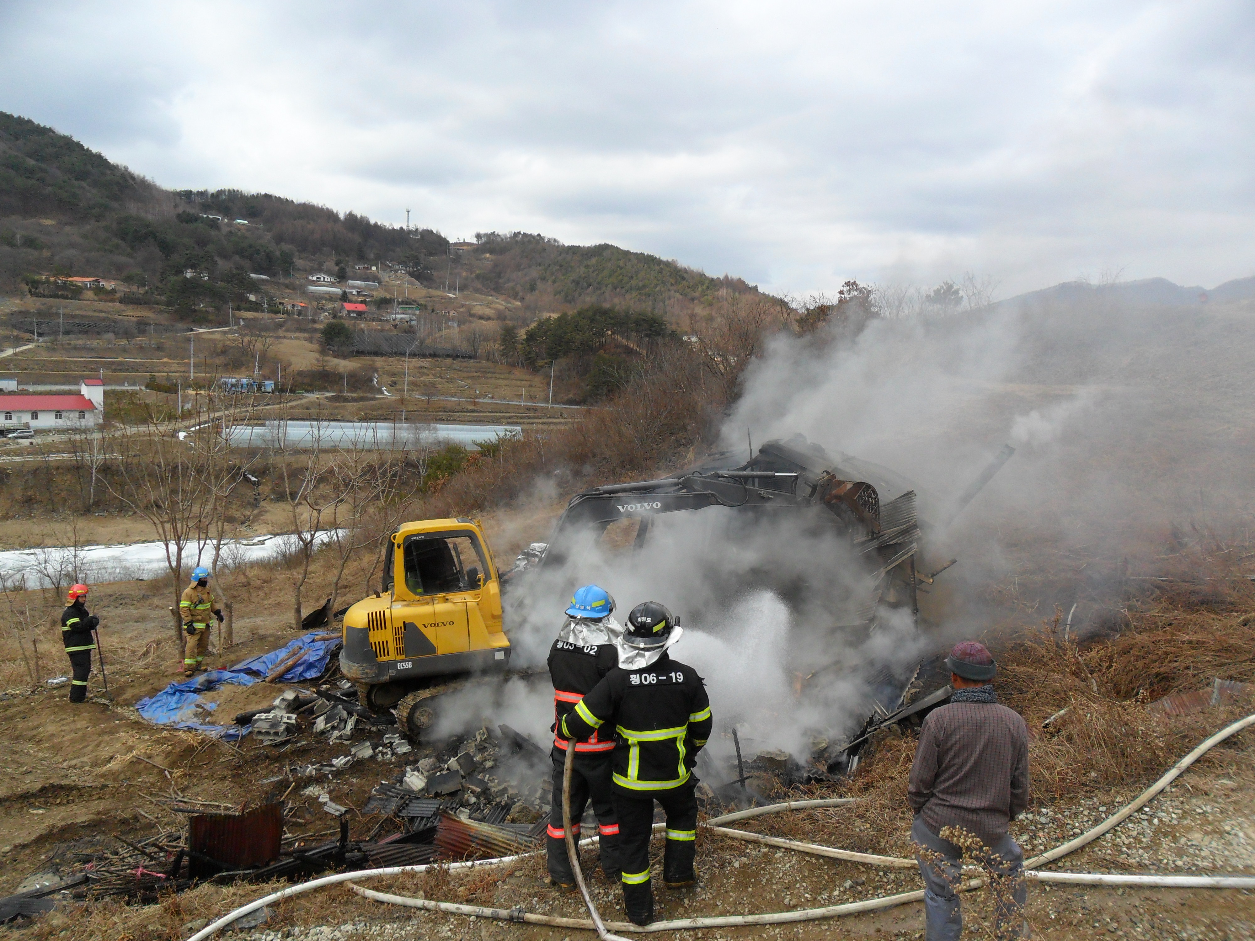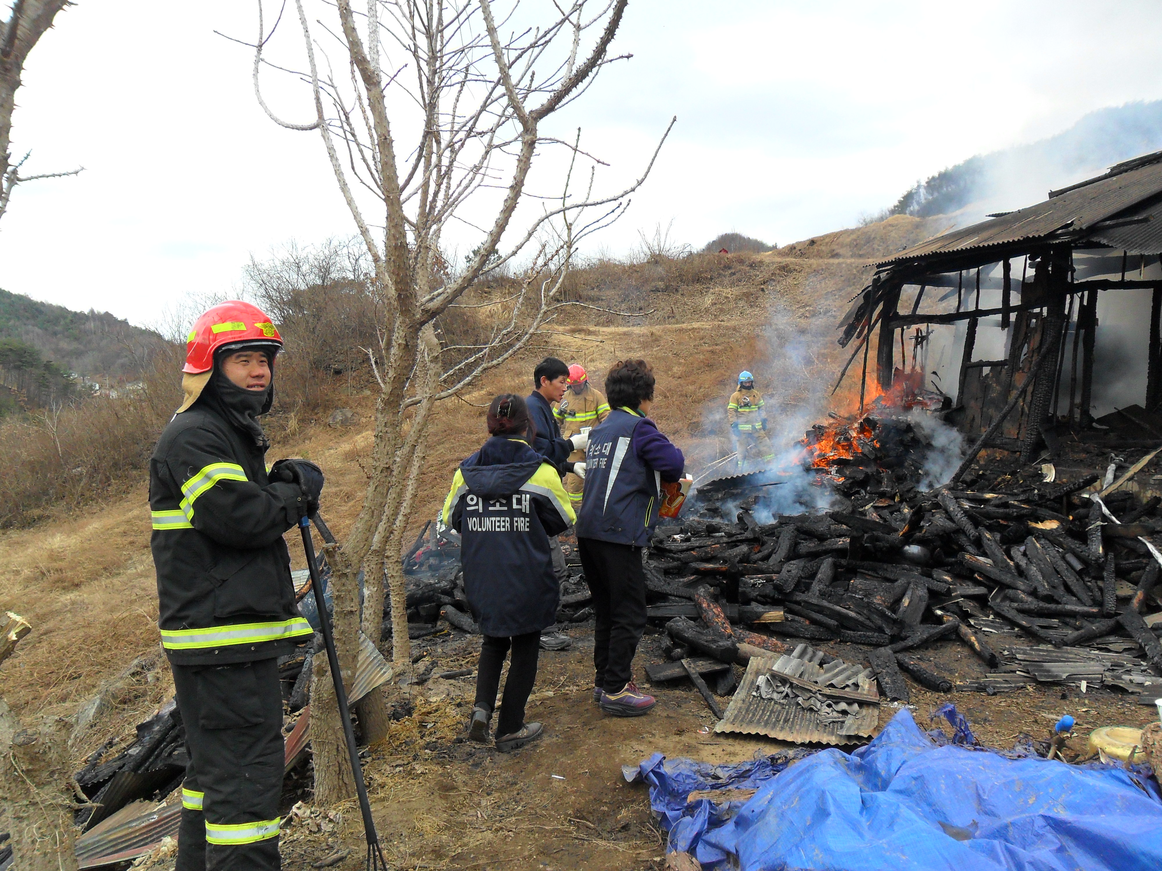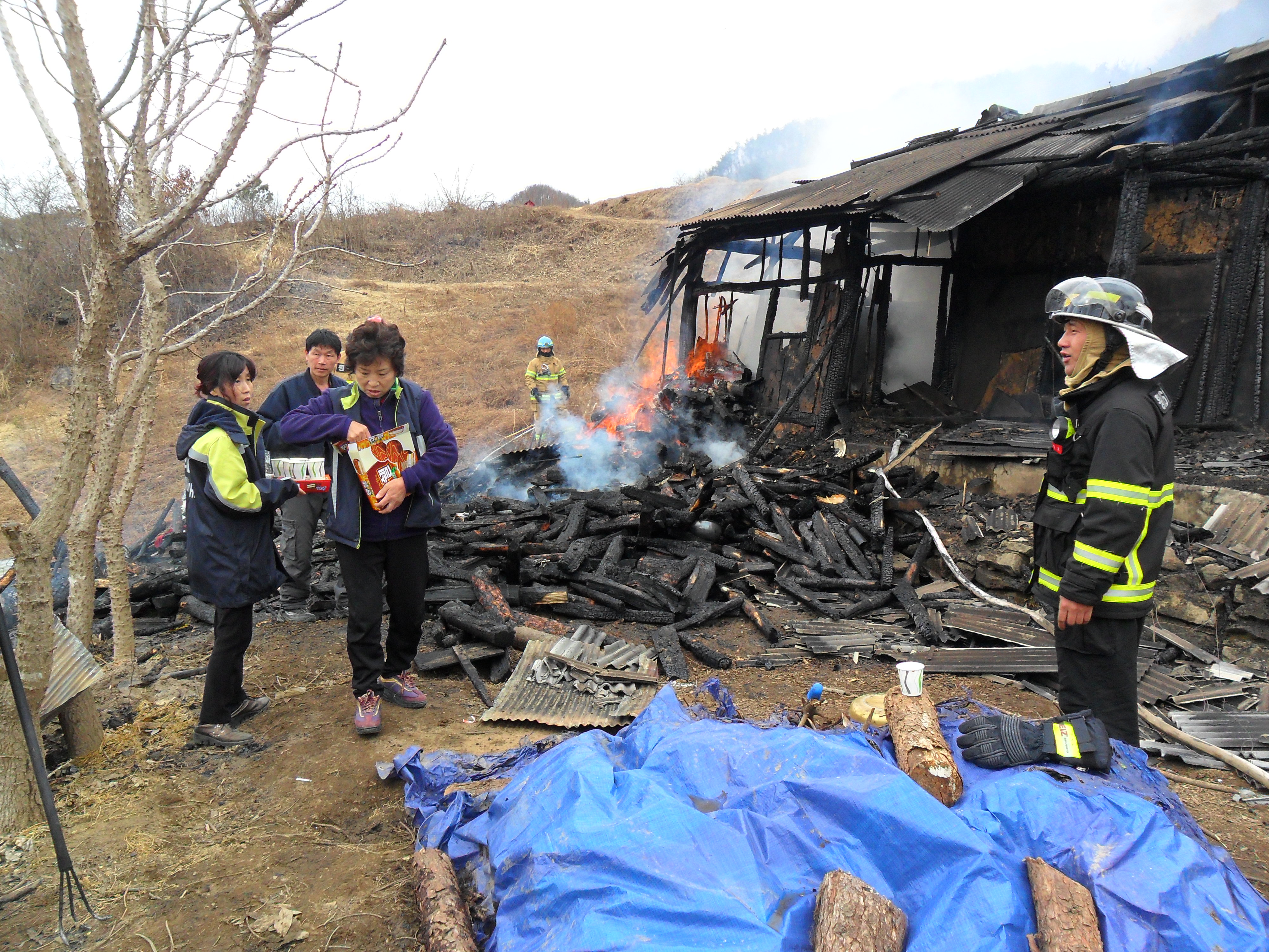 화재로 인해 집전채가 전소되었다. 이에 수고 하시는 소방대원분들과