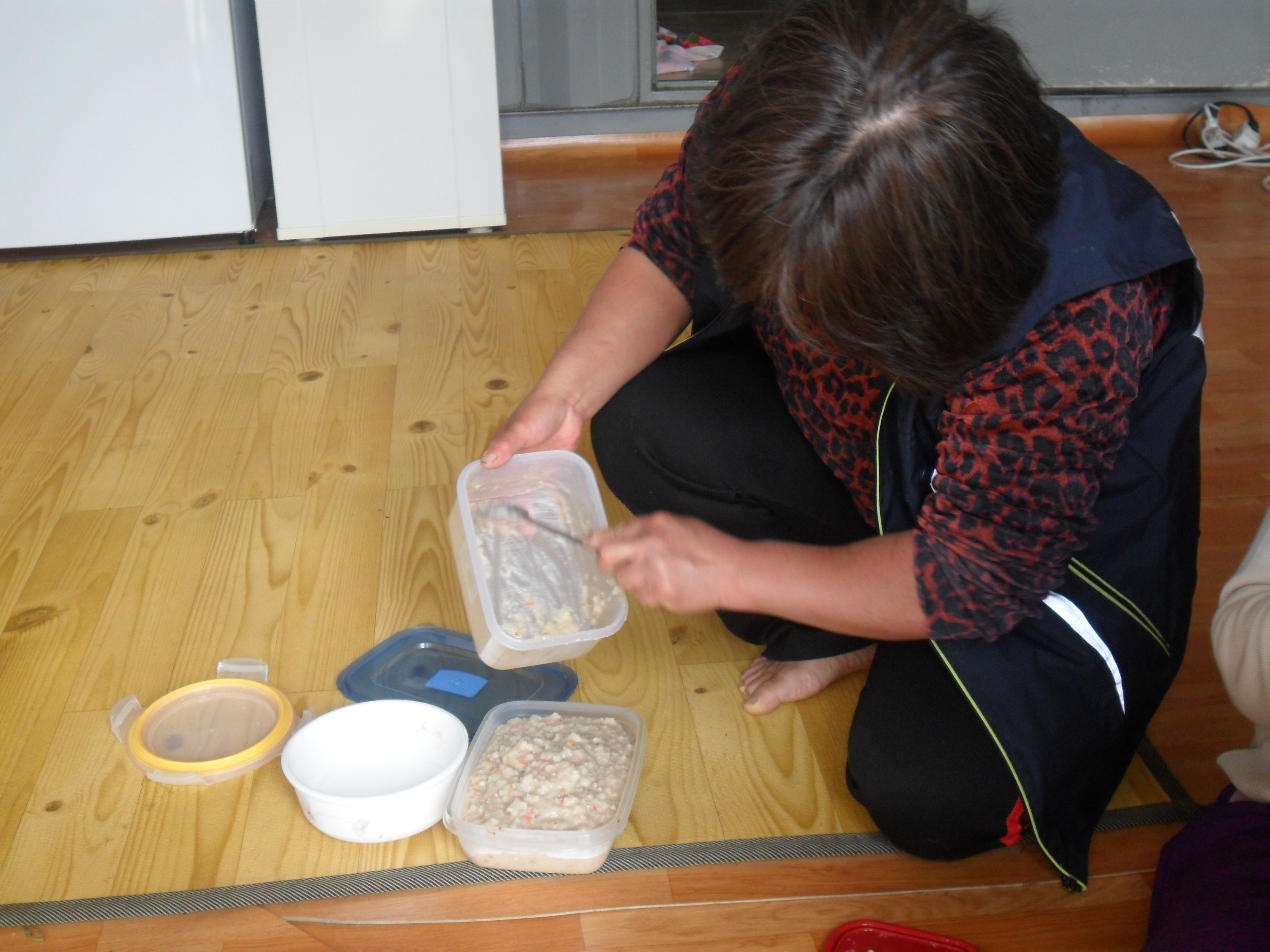 야채죽을 만들어서 전달하였다.