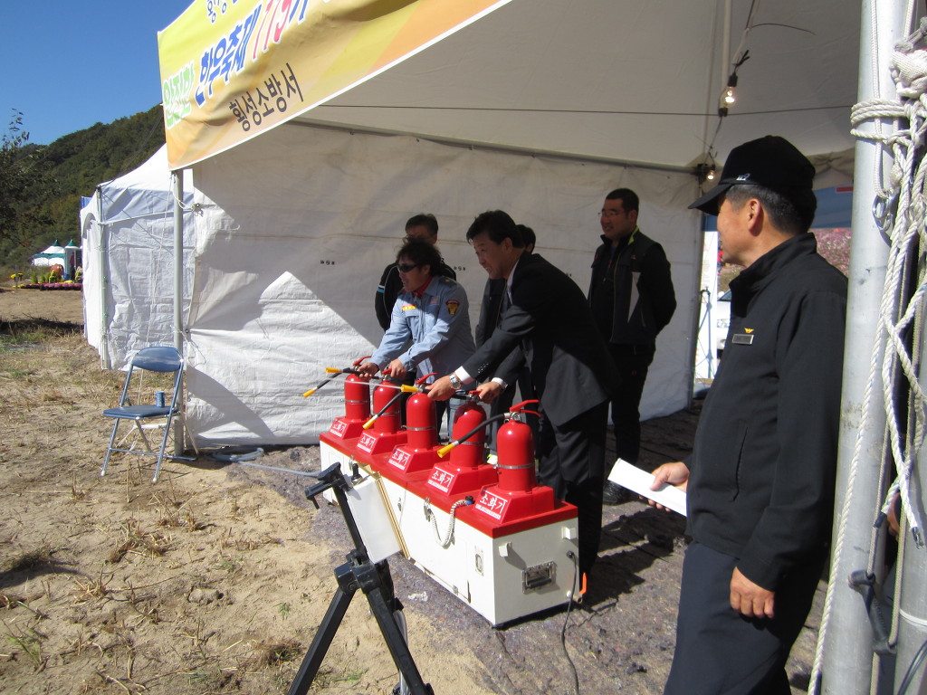 제8회한우축제 행사장섶다리낙하방지및물소화기작동요령.안전지킴이봉사활동.목요일조반장김창수외5명.10월18일