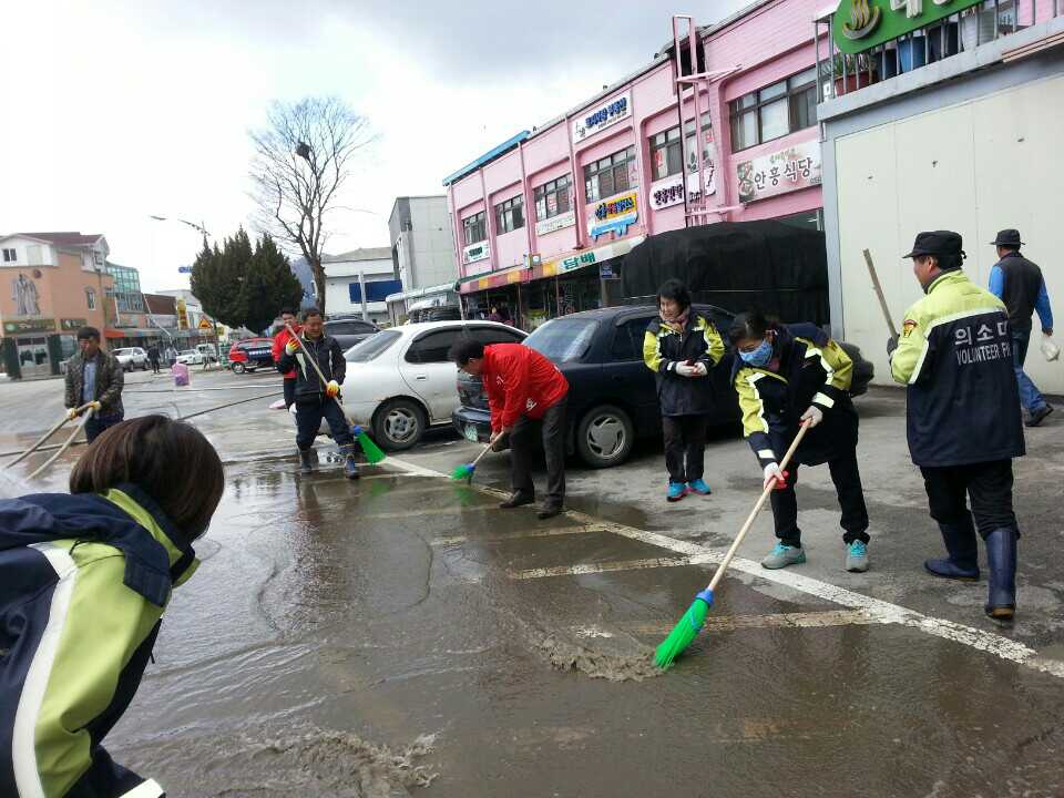 2014년 4월 4일 새봄맞이 시가지에 겨울동안 쌓인 먼지 깨끝하게 씻어내는 대청소을 하였습니다.